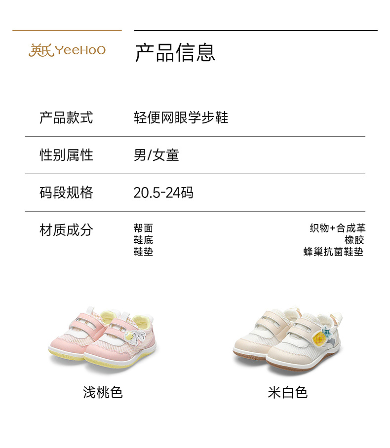 【商场同款】英氏学步鞋软底抗菌男童女童步前鞋春夏透气网眼鞋子