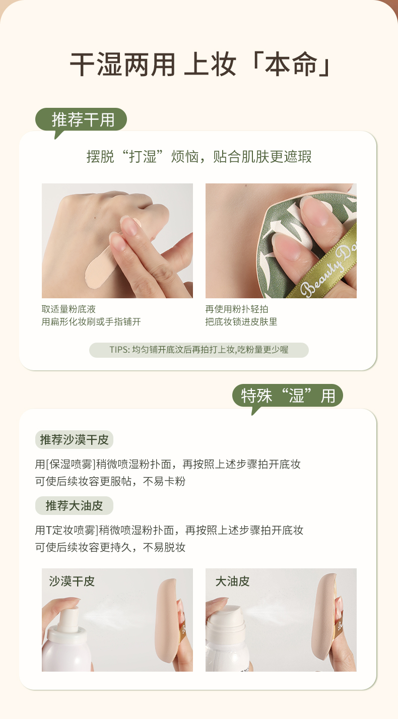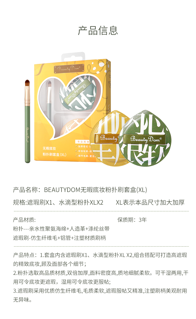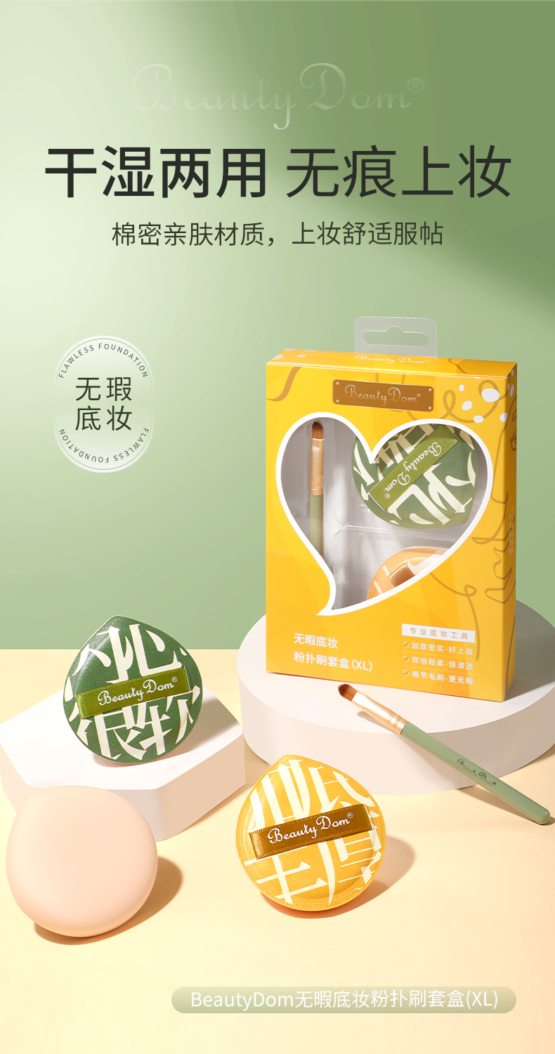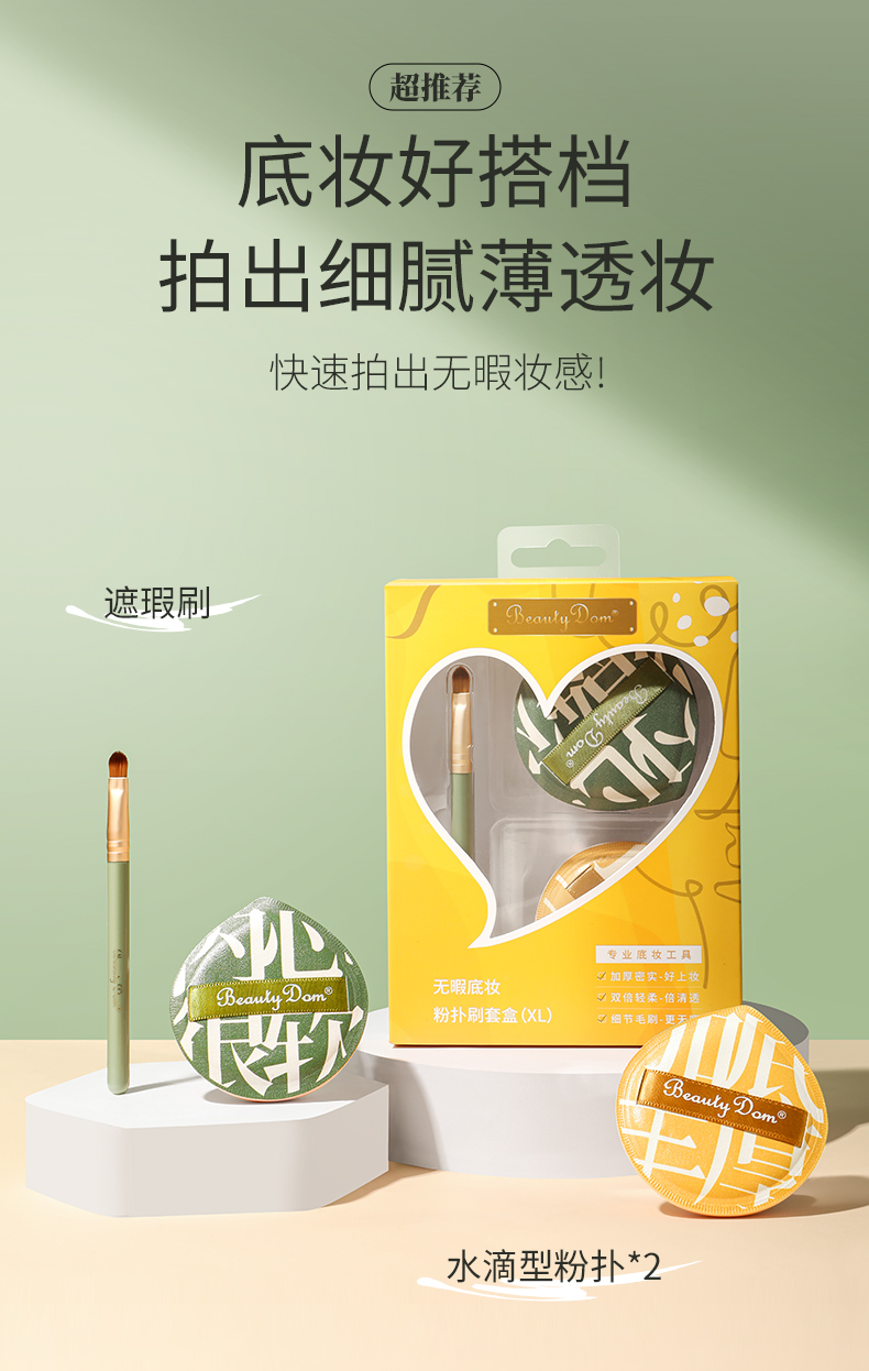 【9.9福利】BeautyDom无暇底妆粉扑刷套盒(粉扑*2+遮瑕刷*1)XL