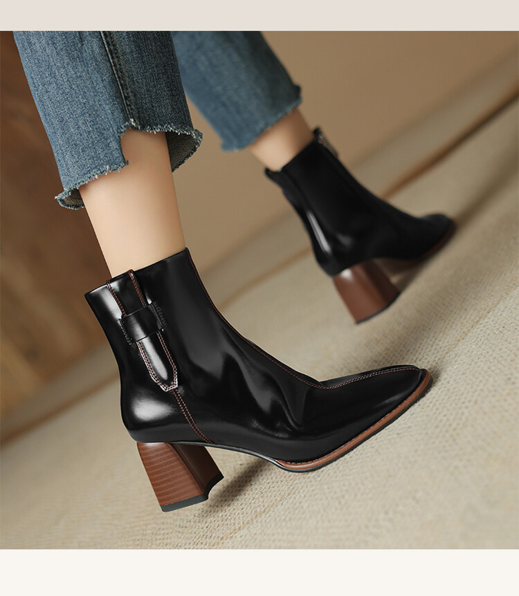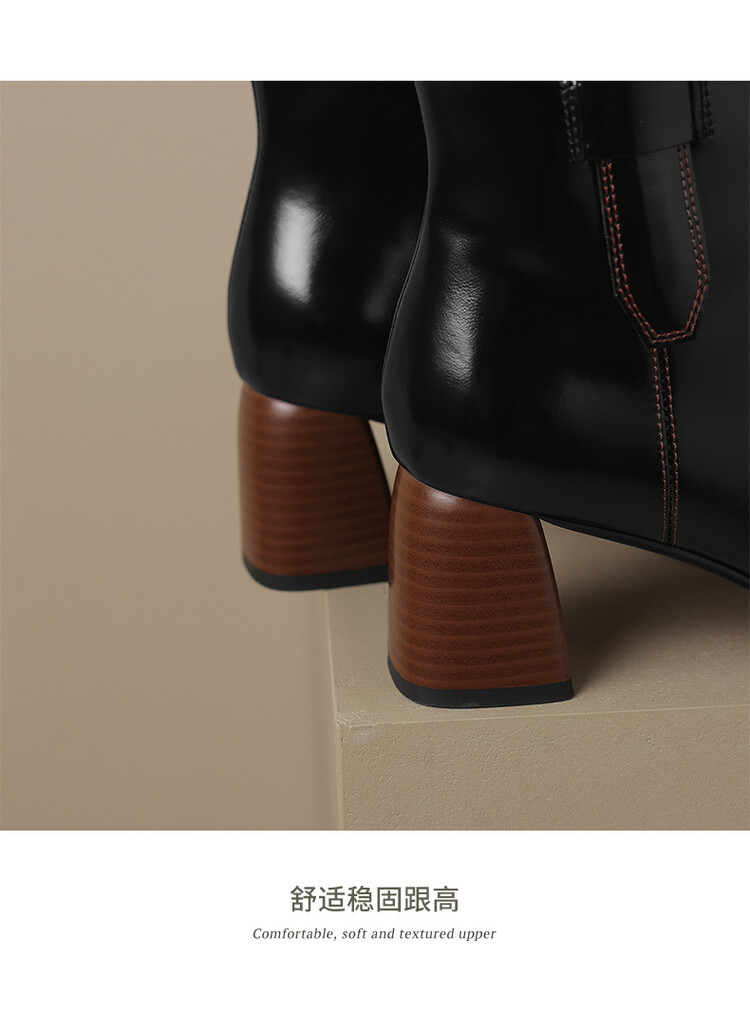 【预售5天】短筒女靴子秋冬新款简约时尚短靴抽带设计粗高跟时装靴HCYYHD&5015