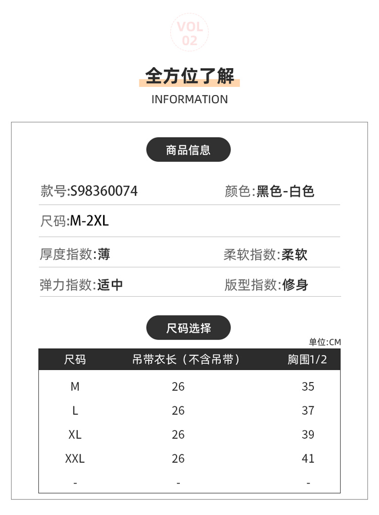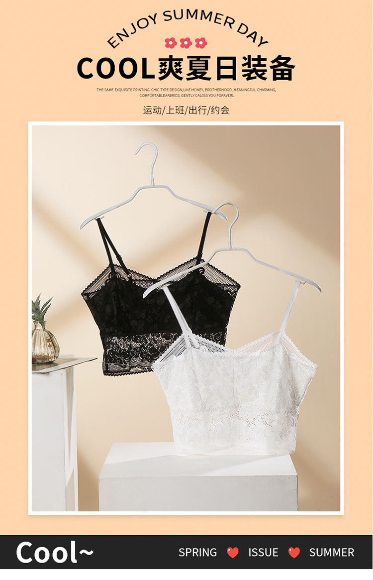 芬腾吊带背心夏季内搭内衣女短款抹胸上衣打底防走光黑白通