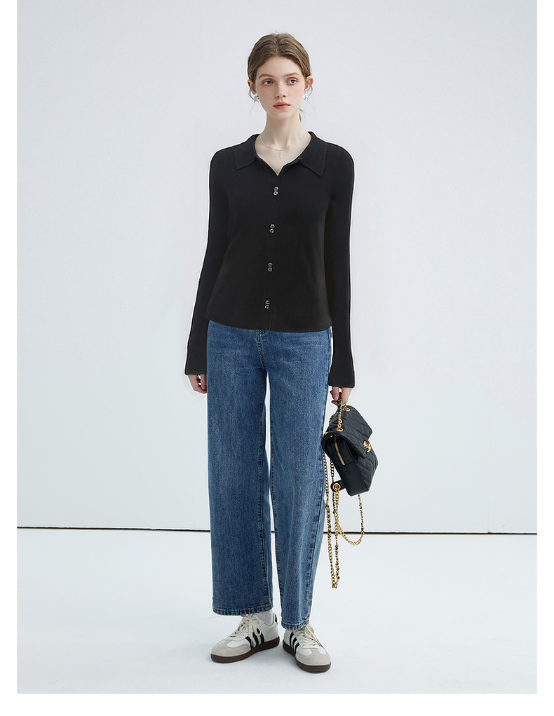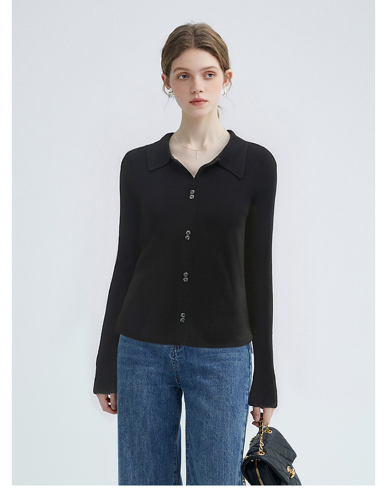 会员福利【绵羊毛×高密针织】拉夏贝尔/La Chapelle云柔软糯针织衫翻领方扣套头慵懒感开衫毛衣