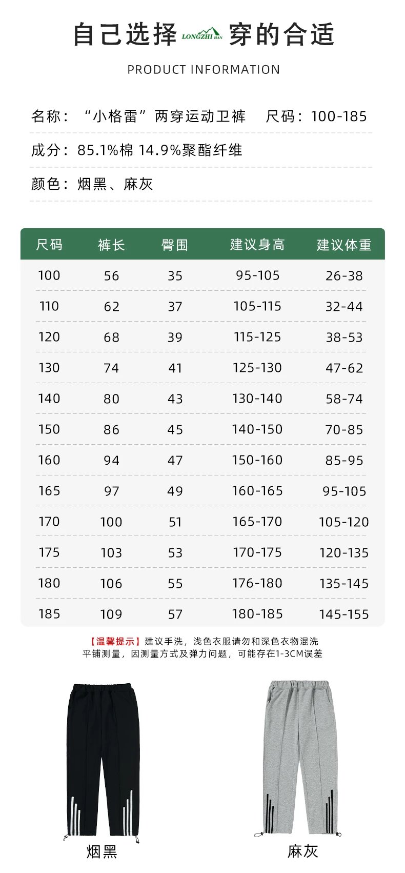 【24年新款】龙之涵 亲子款“小格雷”两穿运动卫裤 婴幼儿A类标准 100-185码2色可选