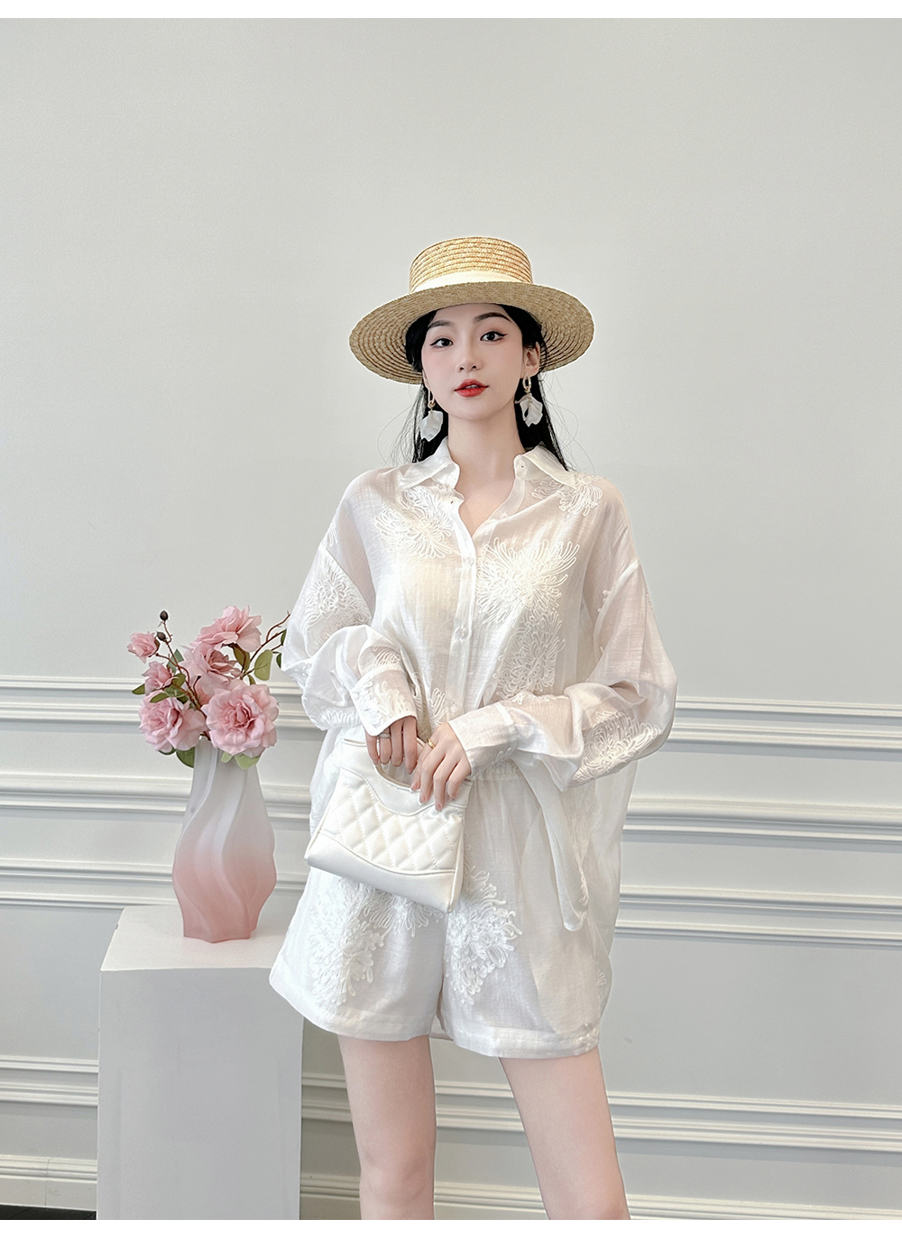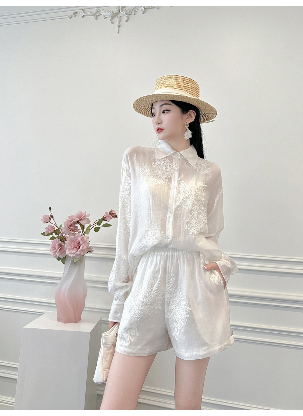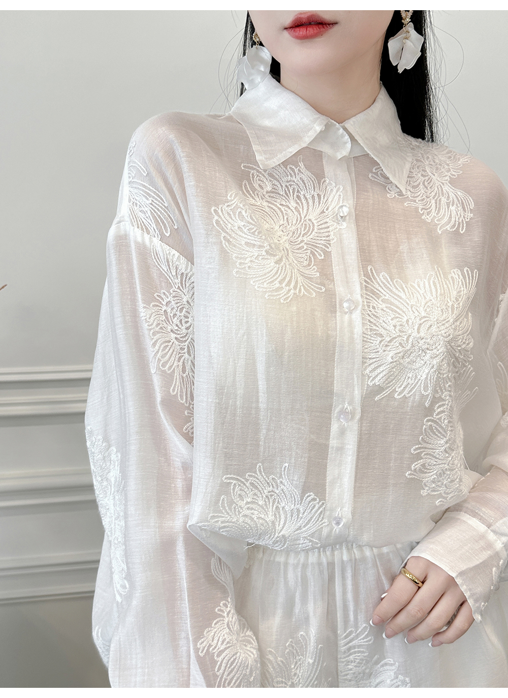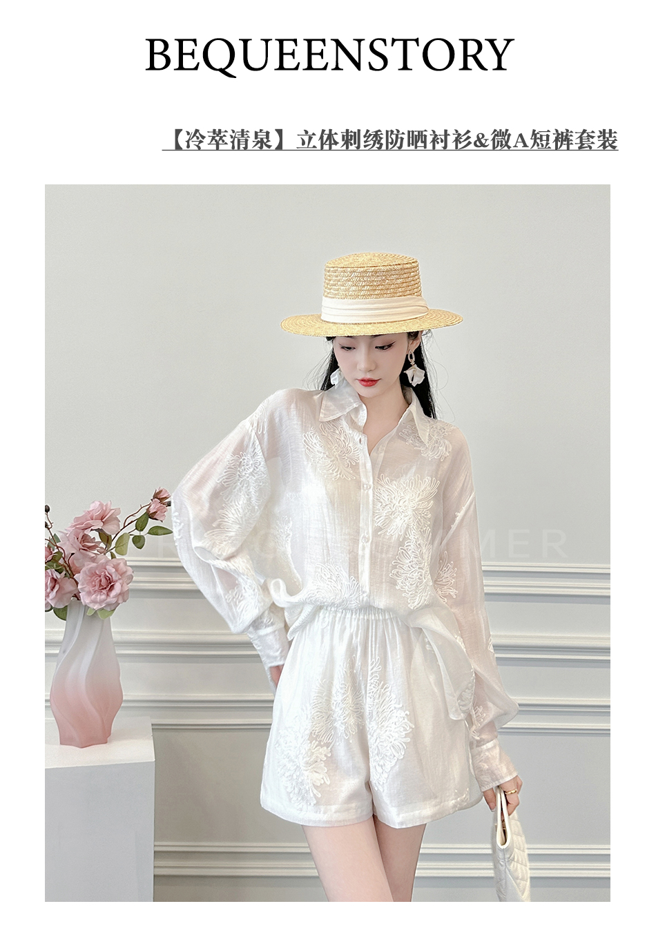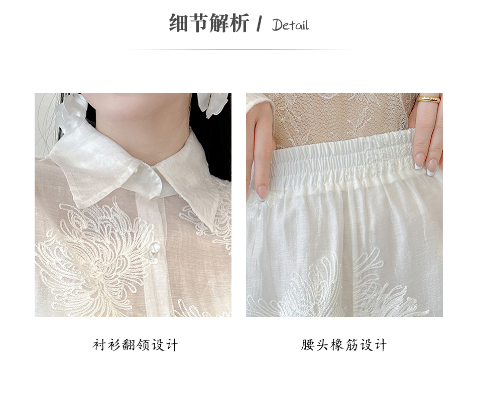 BeQueenStory【冷萃清泉】重工国风立体刺绣轻薄衬衫&微A短裤