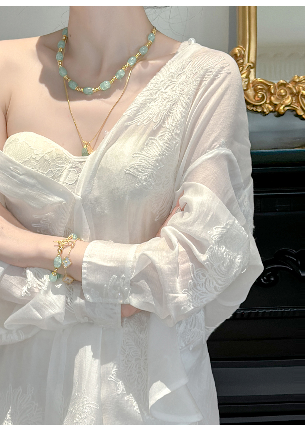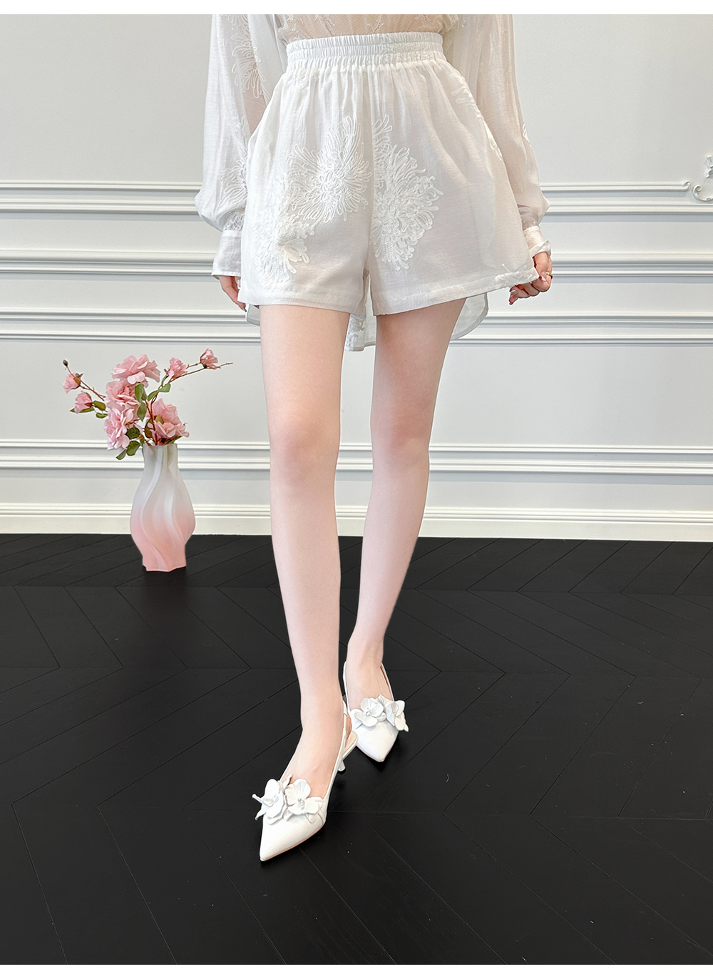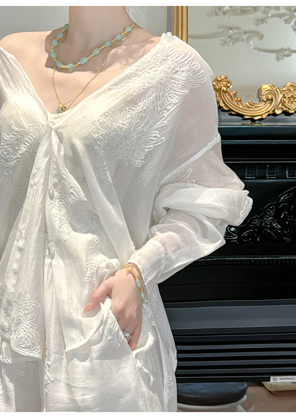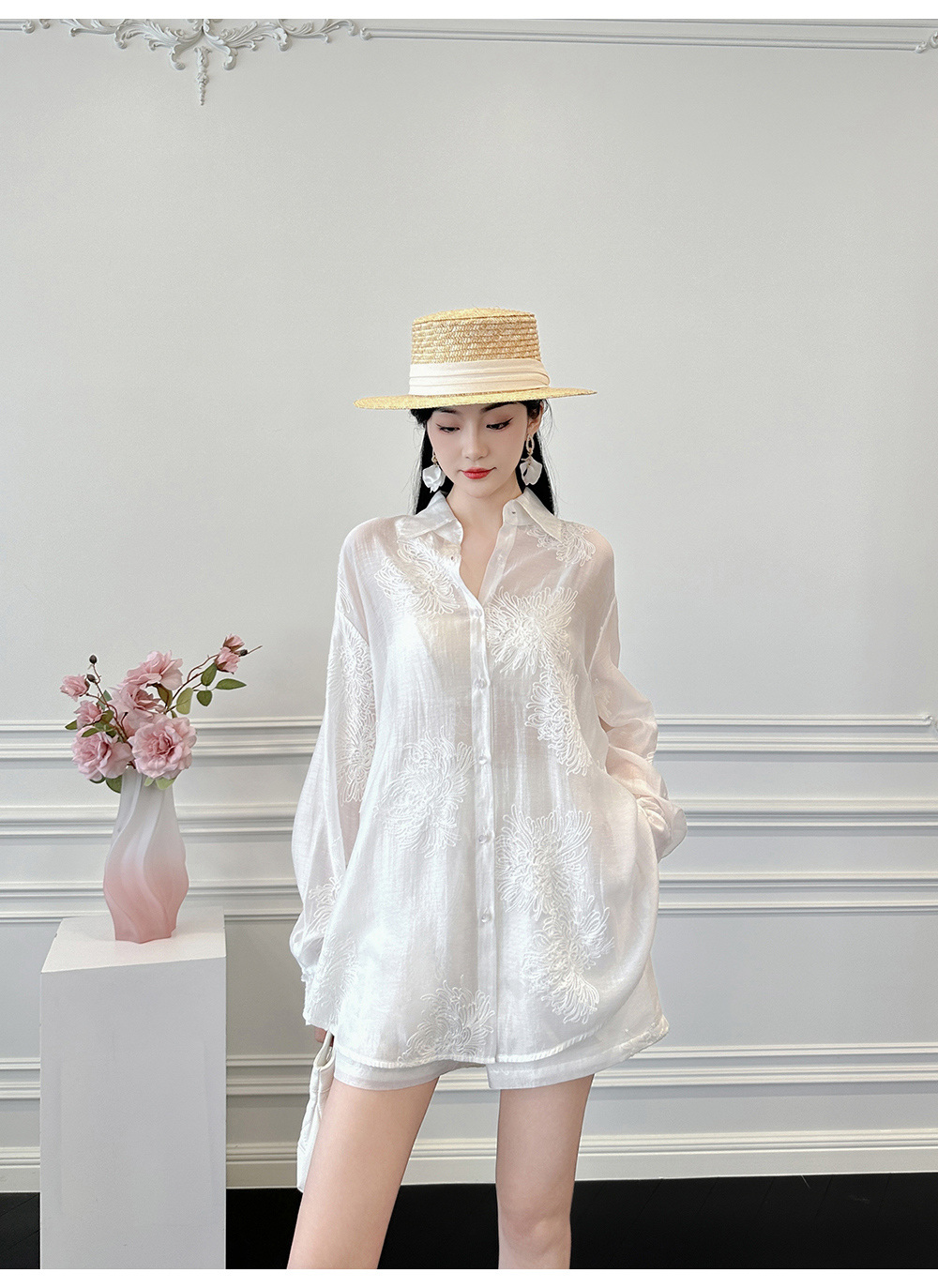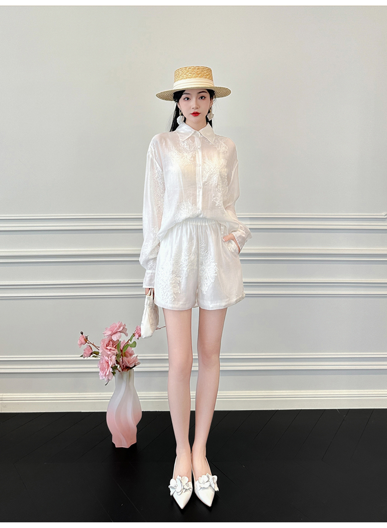 BeQueenStory【冷萃清泉】重工国风立体刺绣轻薄衬衫&微A短裤