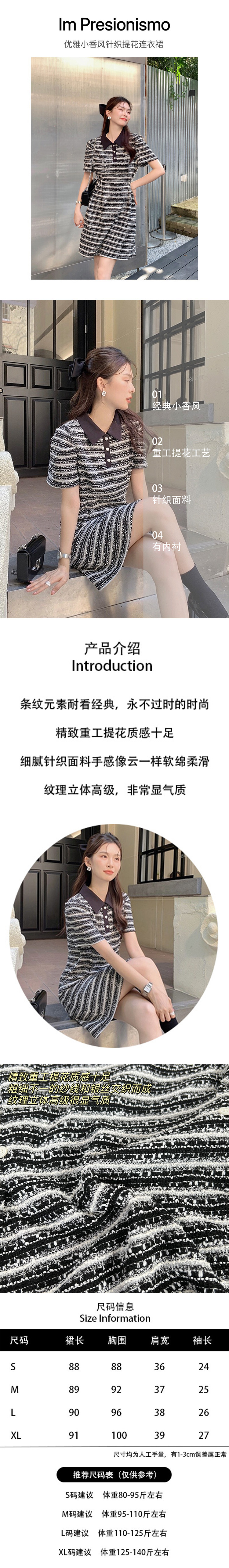 Im Presionismo小香风撞色直筒连衣裙/优雅小香风针织提花连衣裙
