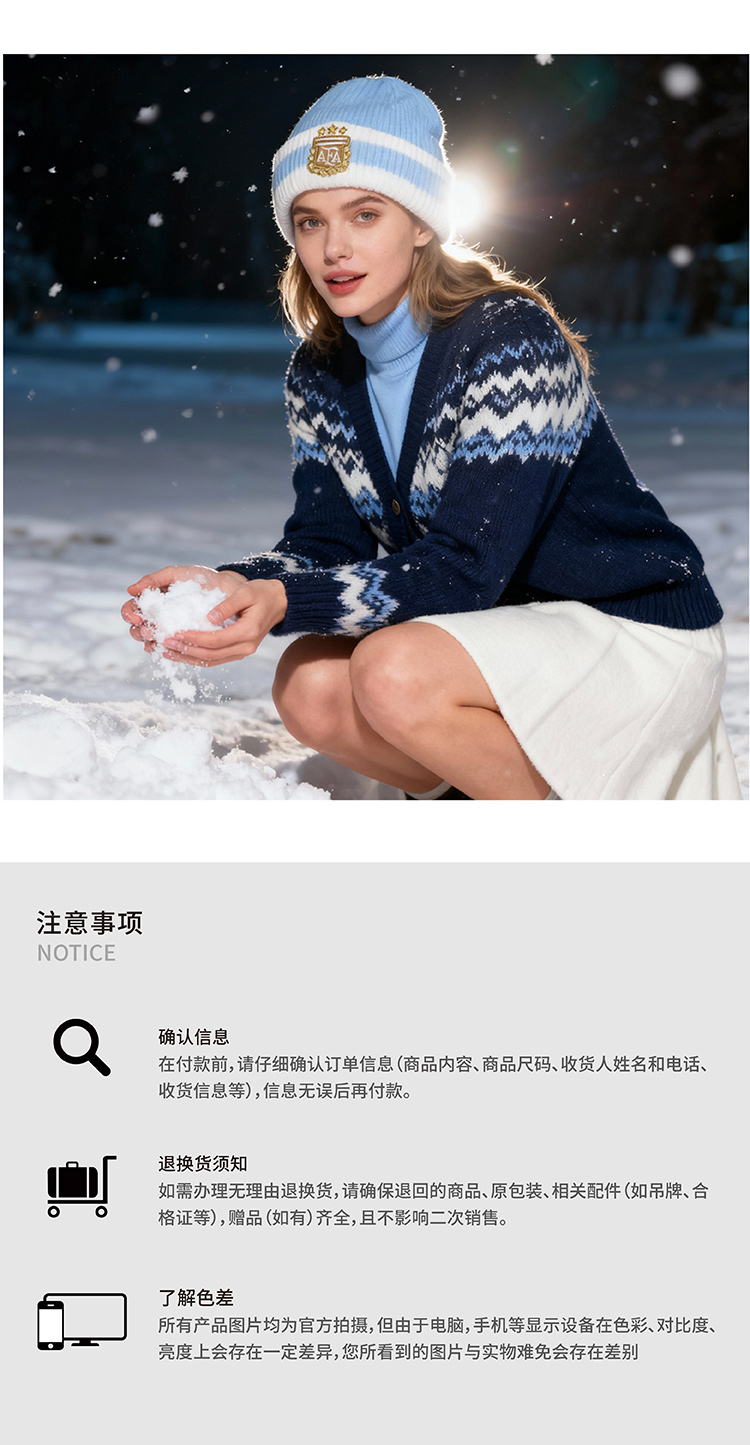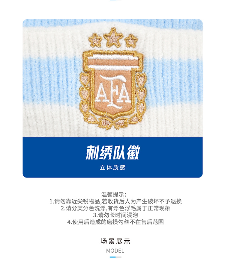 【官方正版】阿根廷国家队 | 蓝白拼色针织帽秋冬保暖毛线帽