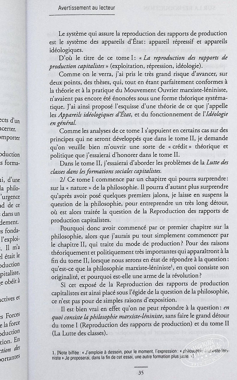 【中商原版】路易 阿尔都塞 论再生产 法文原版 Sur la reproduction Louis Althusser
