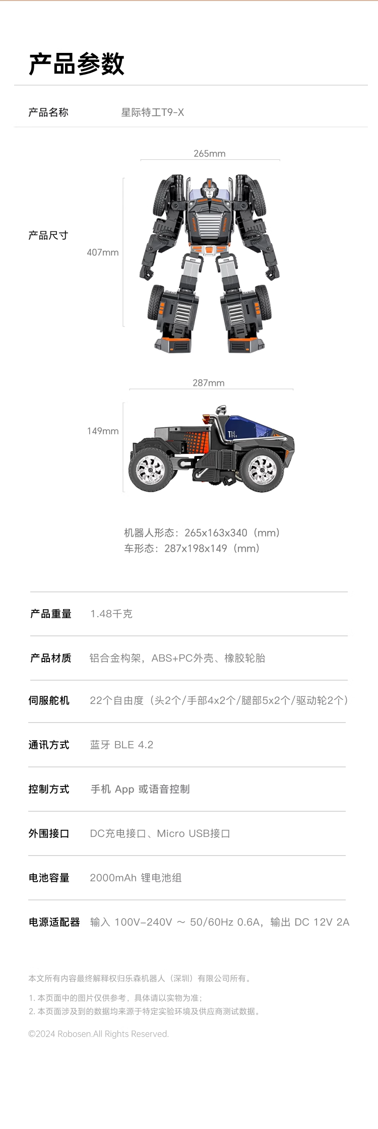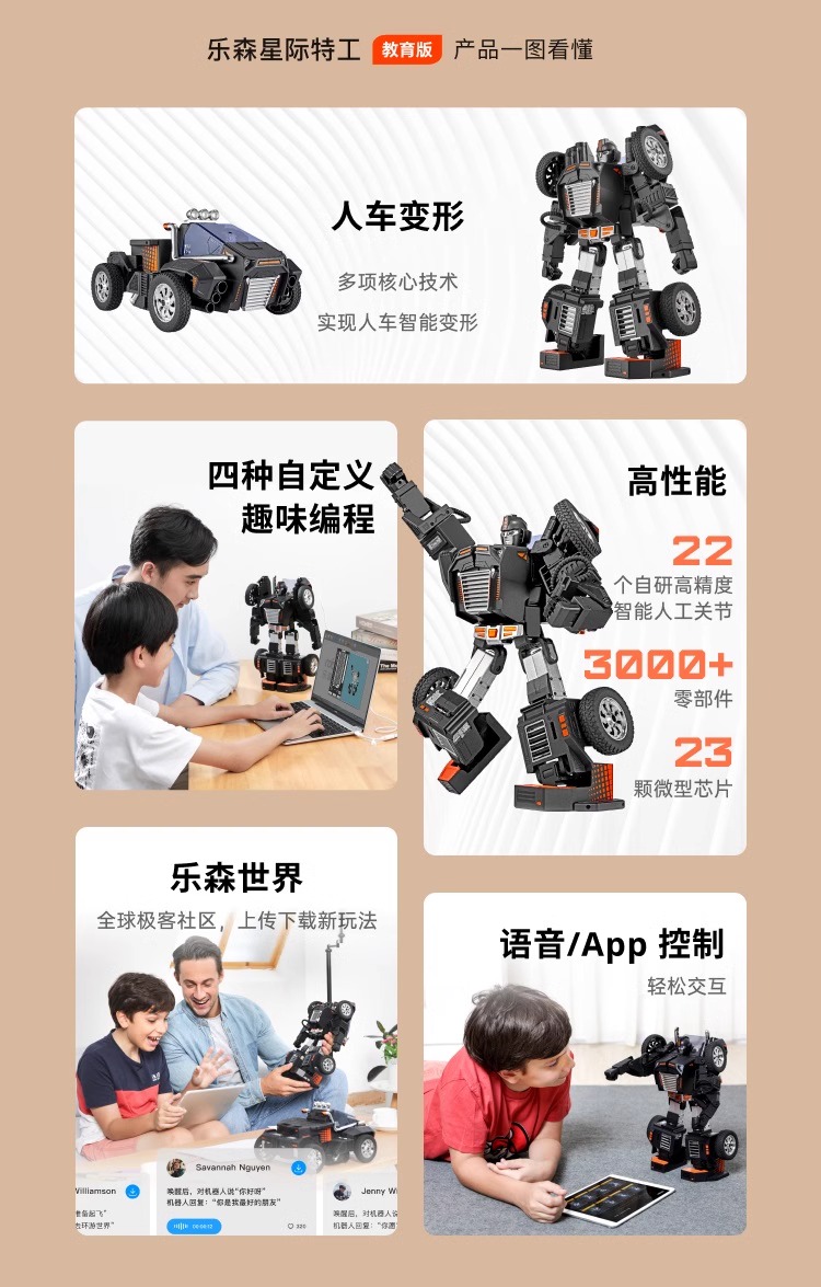 乐森机器人星际特工自动变形2024新款ai交互编程玩具智能机器人T9-X(BC)
