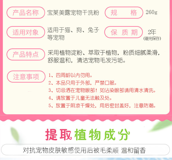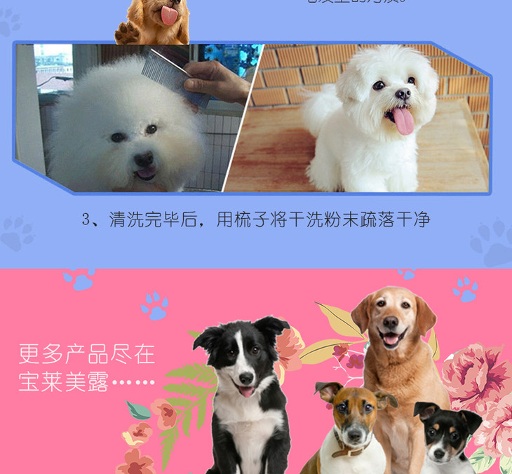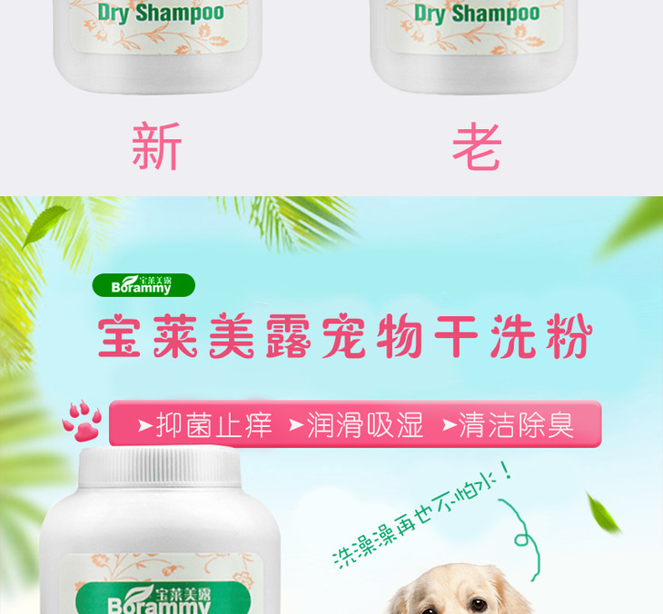 宝莱美露宠物狗狗幼犬干洗粉260g大瓶免洗免水清洁用品
