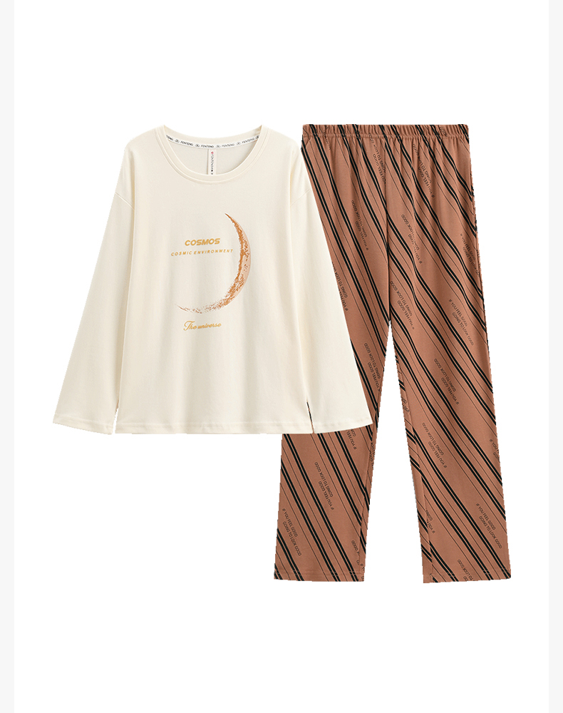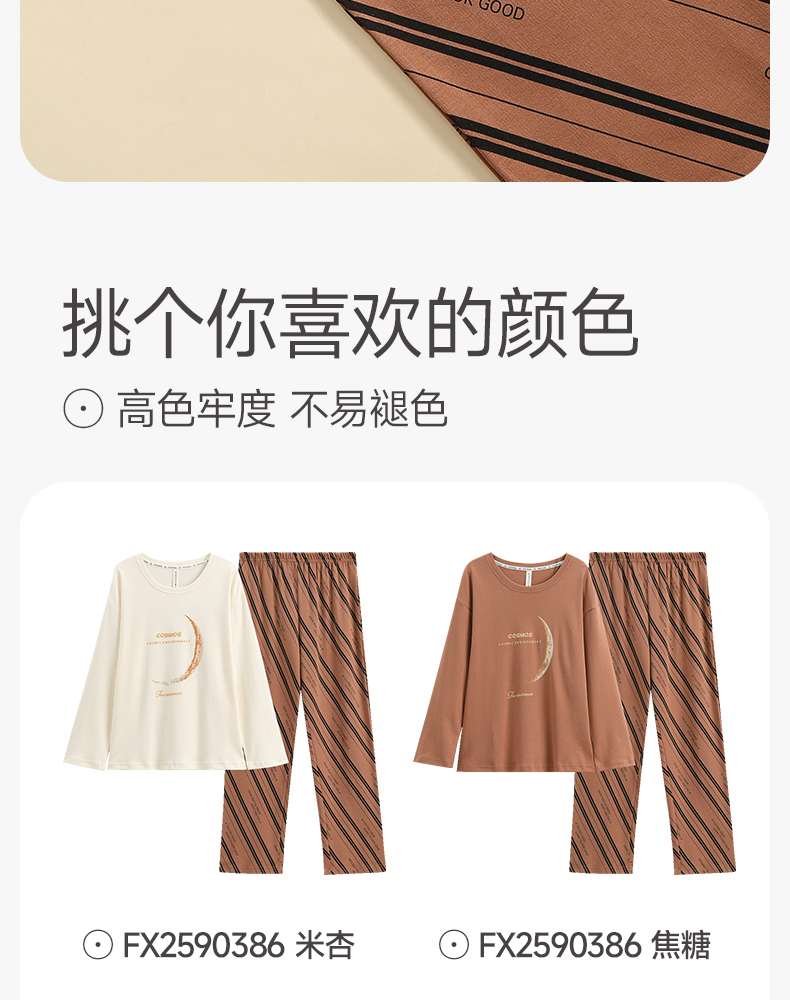 女士睡衣春秋季新款纯棉圆领套头长袖女款休闲大码家居服套装 芬腾