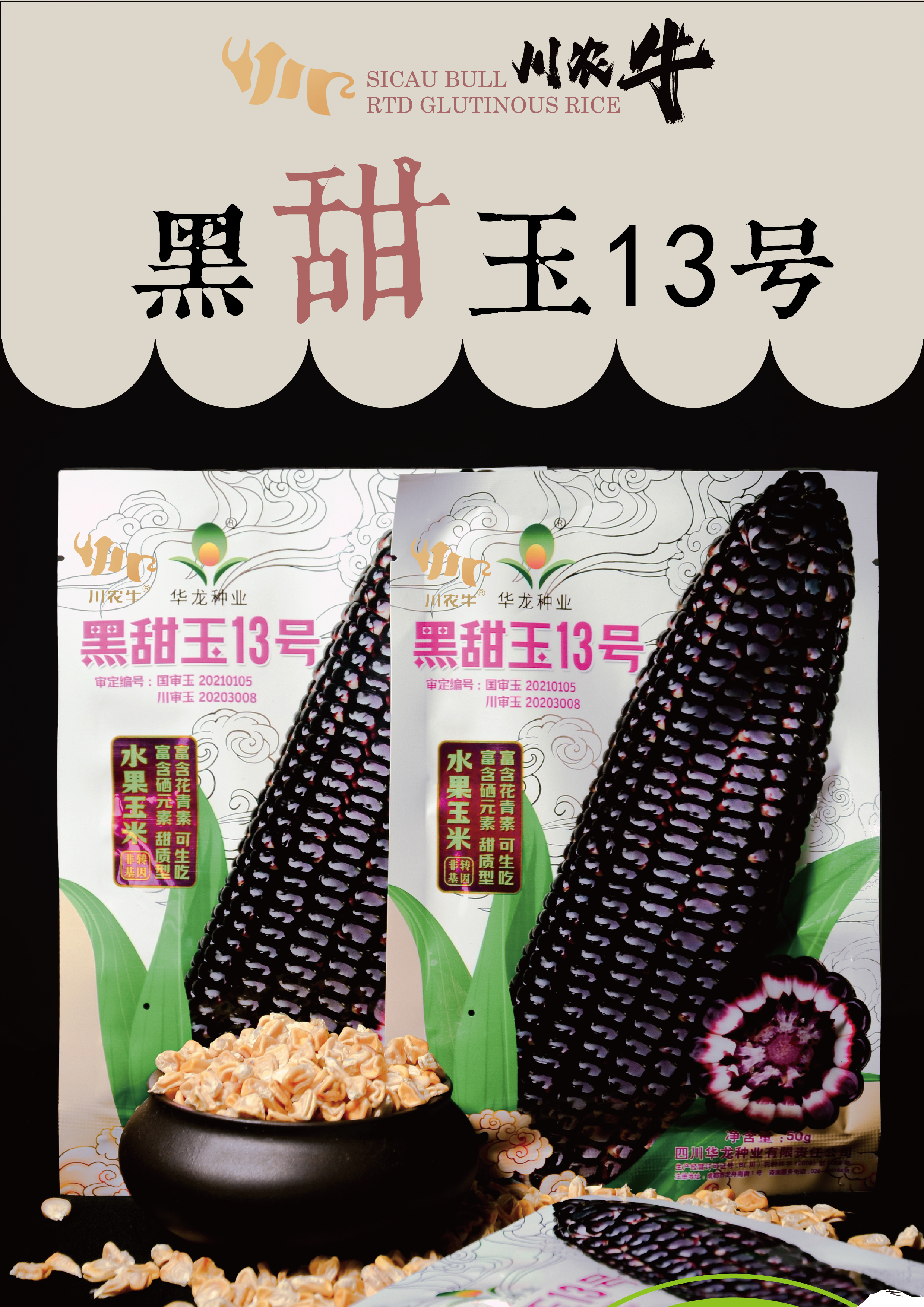 【5袋起包邮】川农牛·黑甜玉种子50g/袋 水果玉米 甜质型 富含花青素、硒元素 可生吃