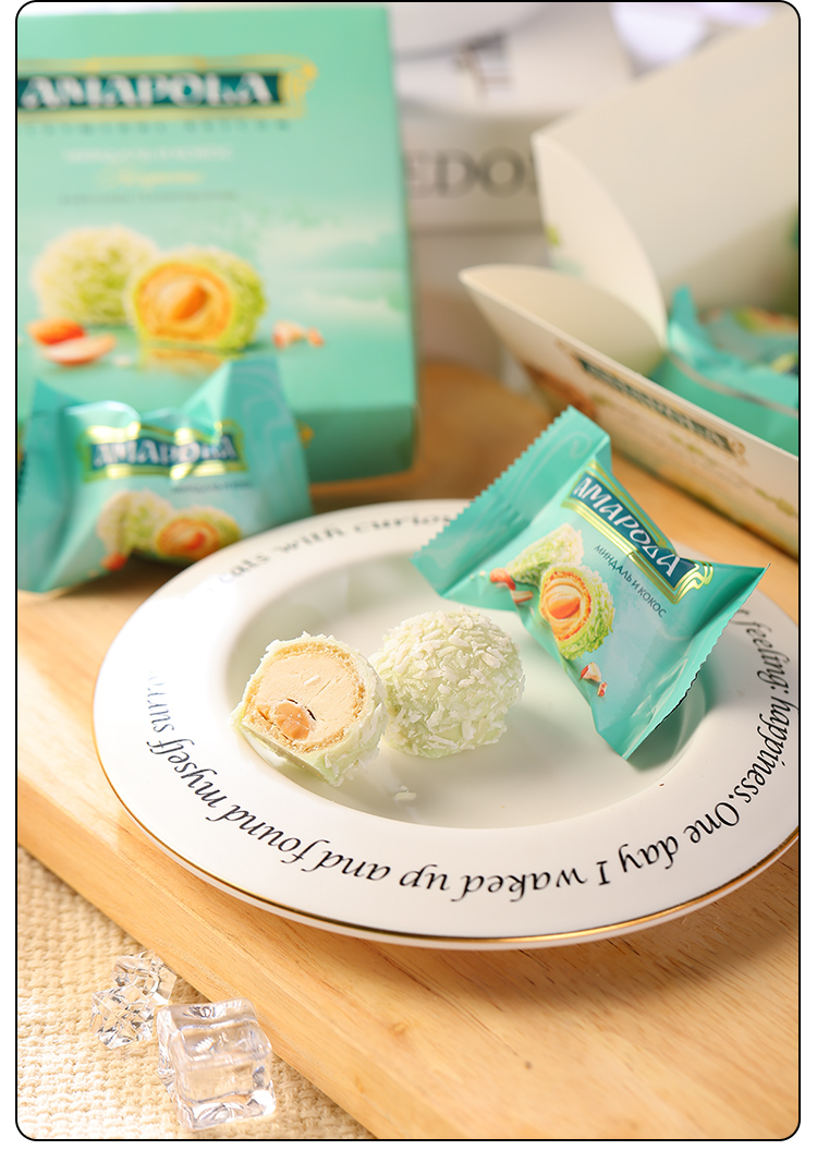 俄罗斯爱比可酥球扁桃仁椰蓉/榛子香草味糖果100g 每天一块愉悦享受 152511/152512