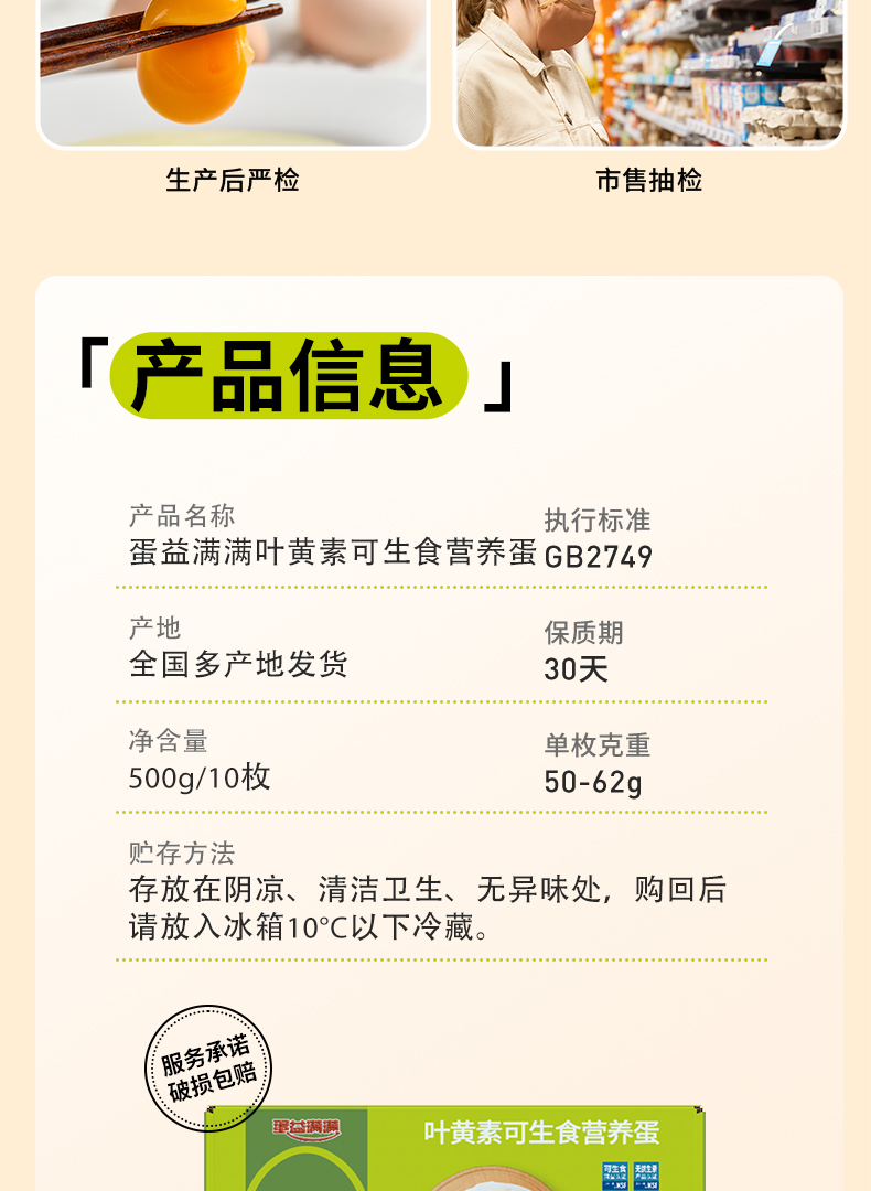 蛋益满满叶黄素可生食营养蛋10枚每箱