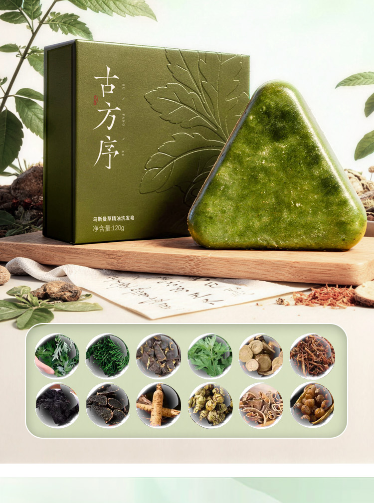 【醒粉福利59.9元3块】古方序乌斯曼草精油洗头皂120g*3盒