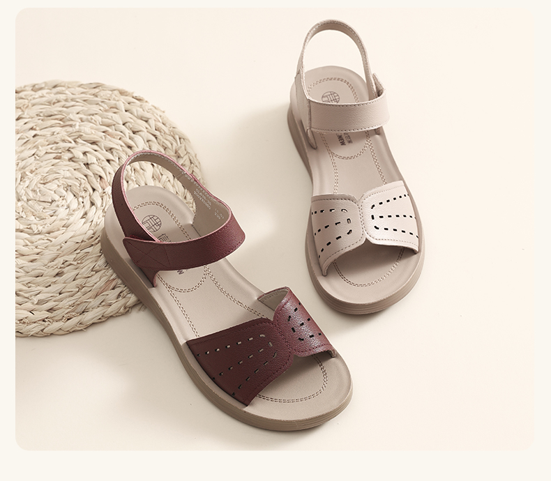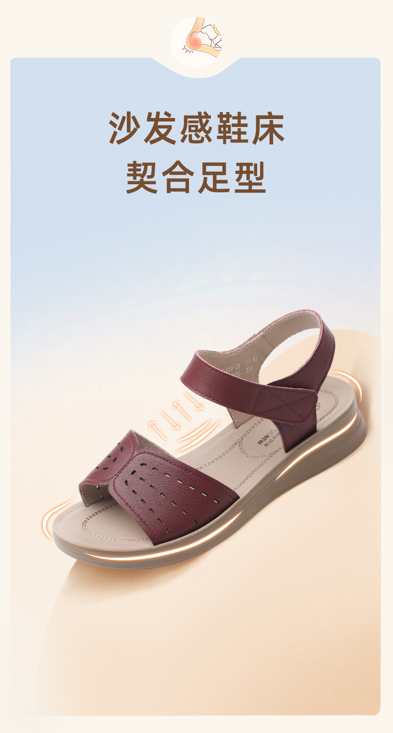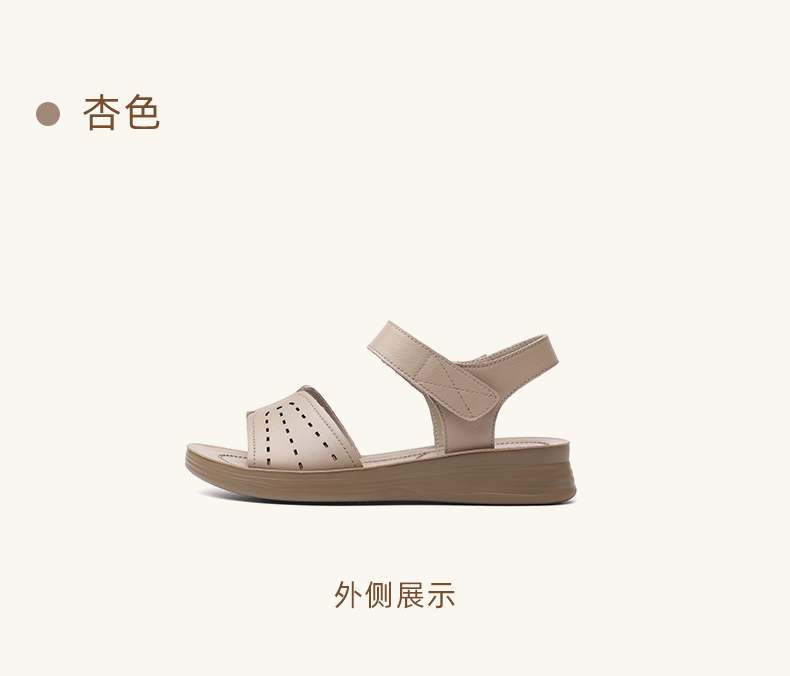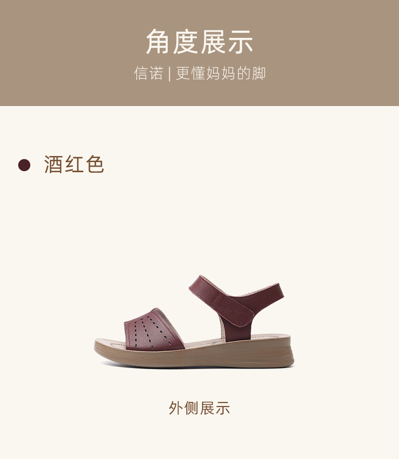 信诺真皮软底妈妈鞋2025新款夏季镂空凉鞋中老年舒适平底单鞋女5L618-25