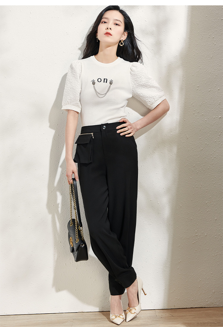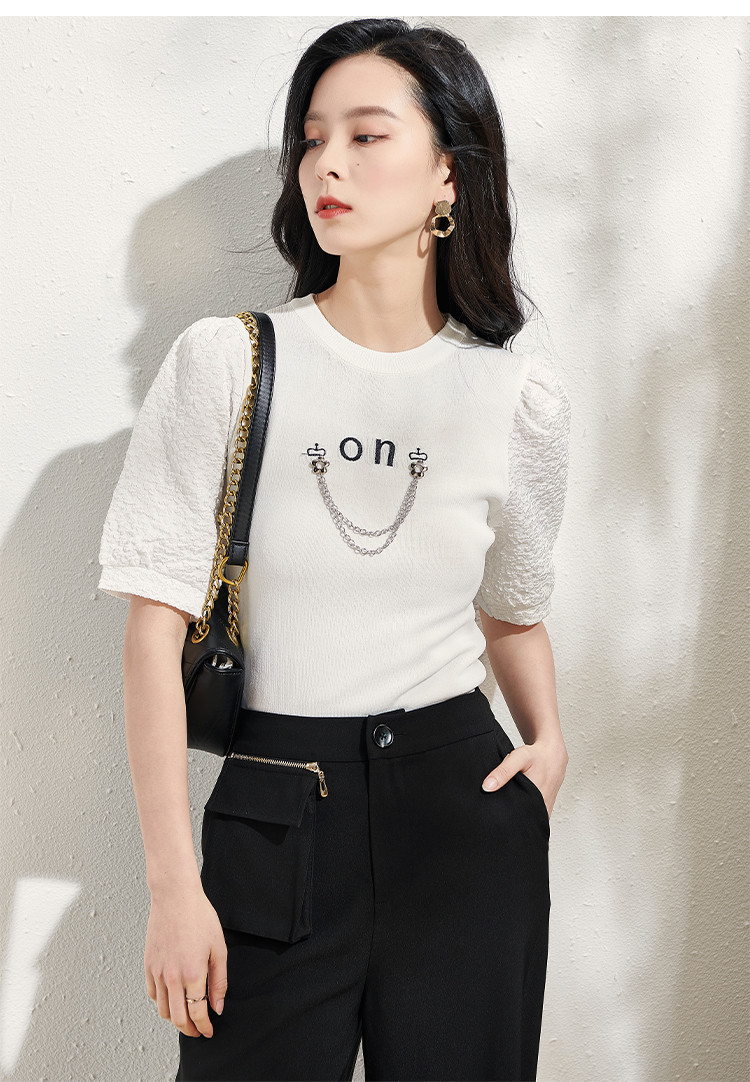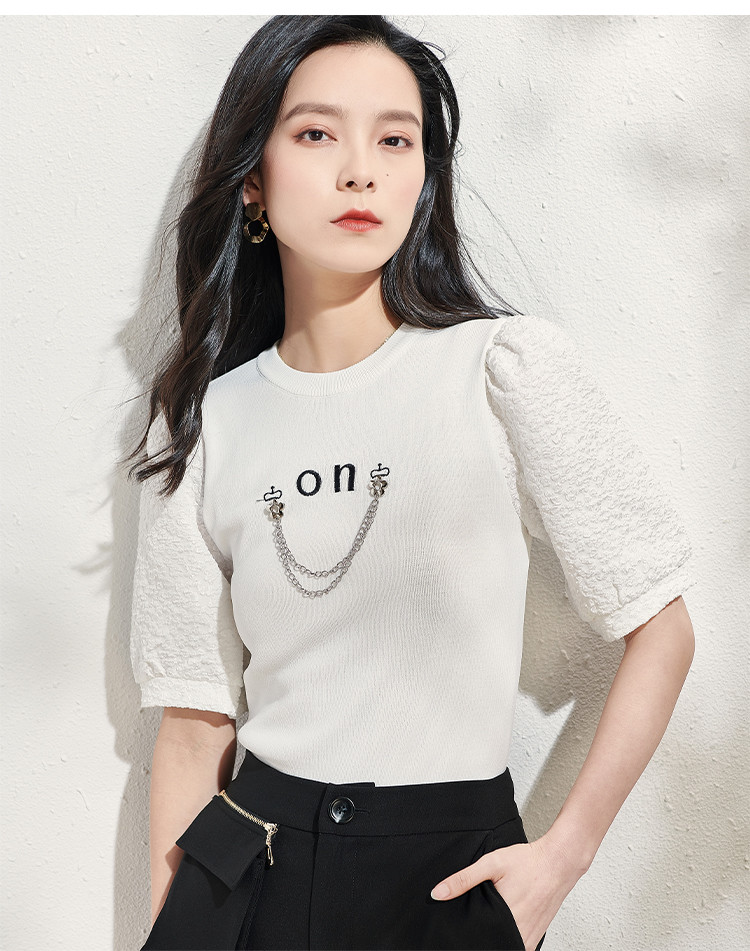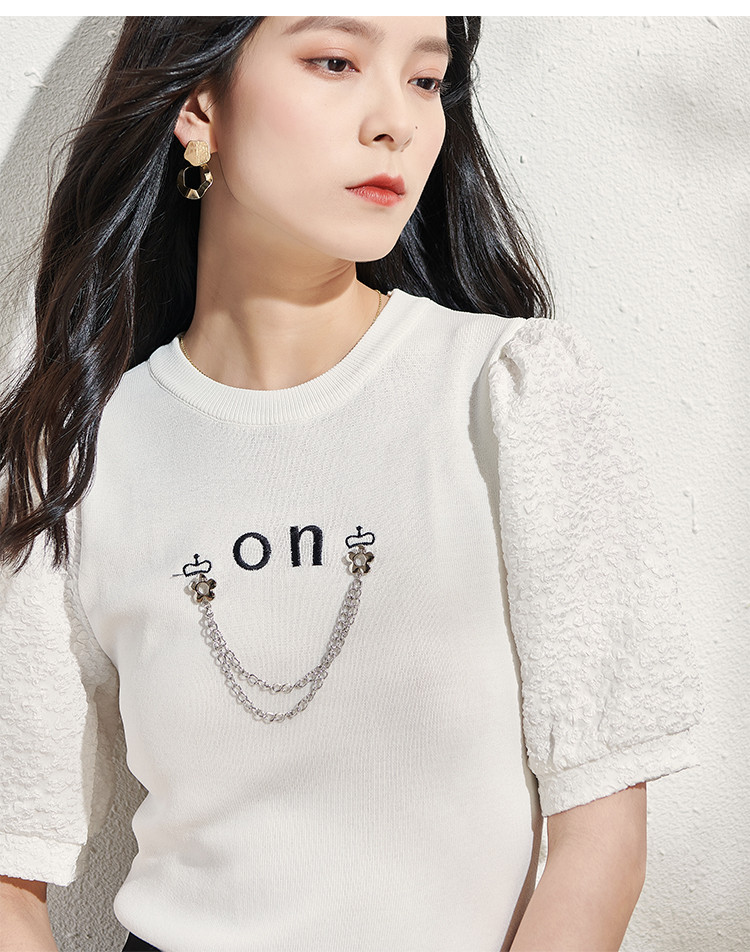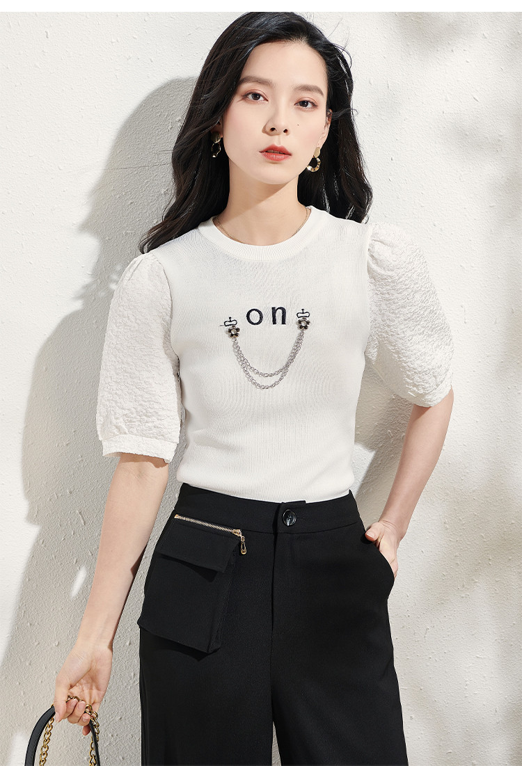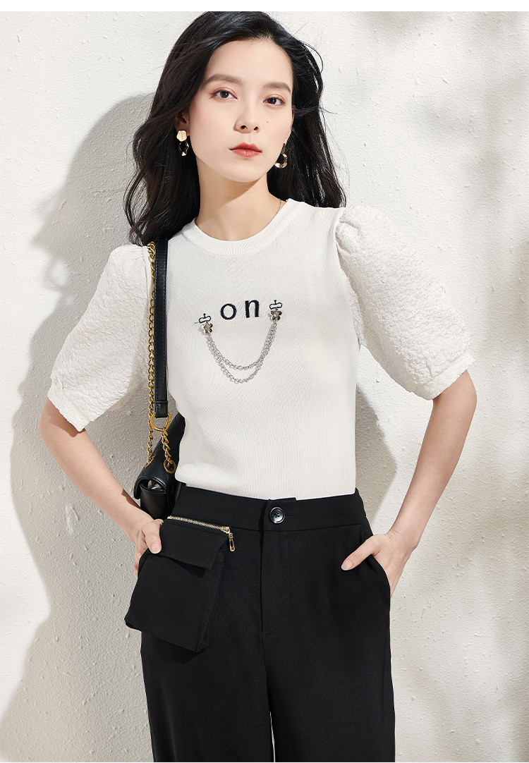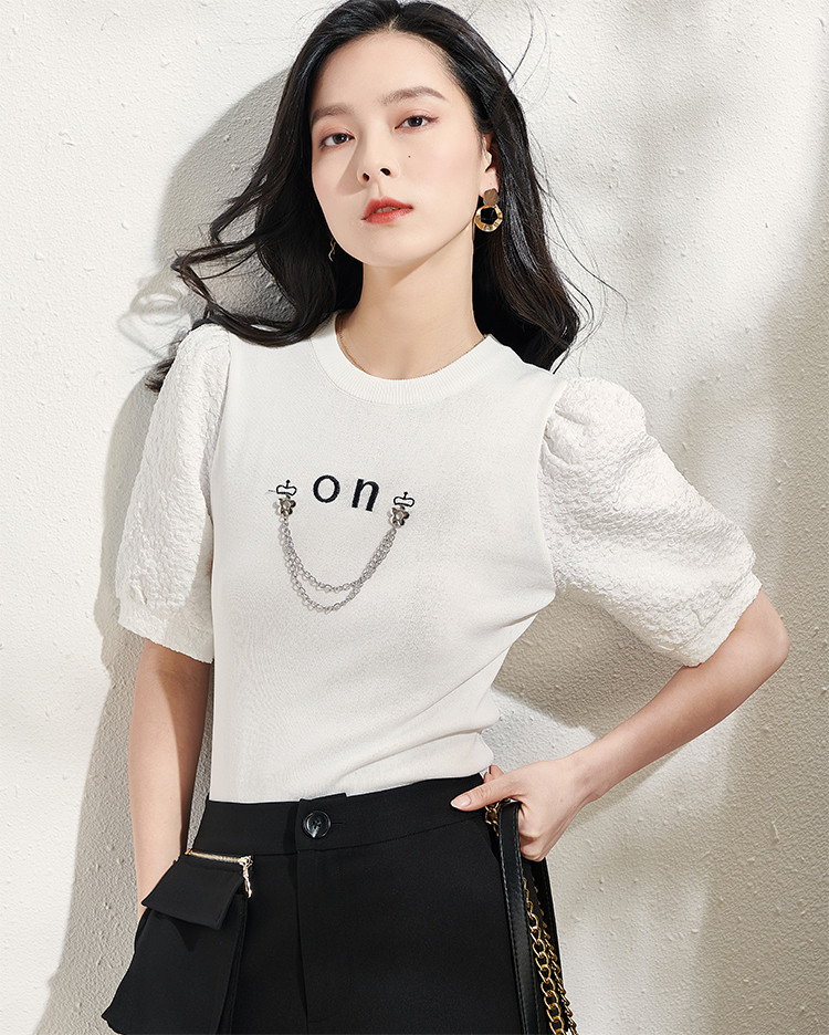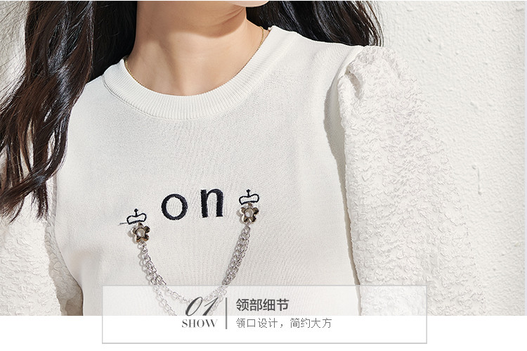 剩M/L 芳外针织拼接泡泡袖袖上衣2026春季新款淑女针织衫