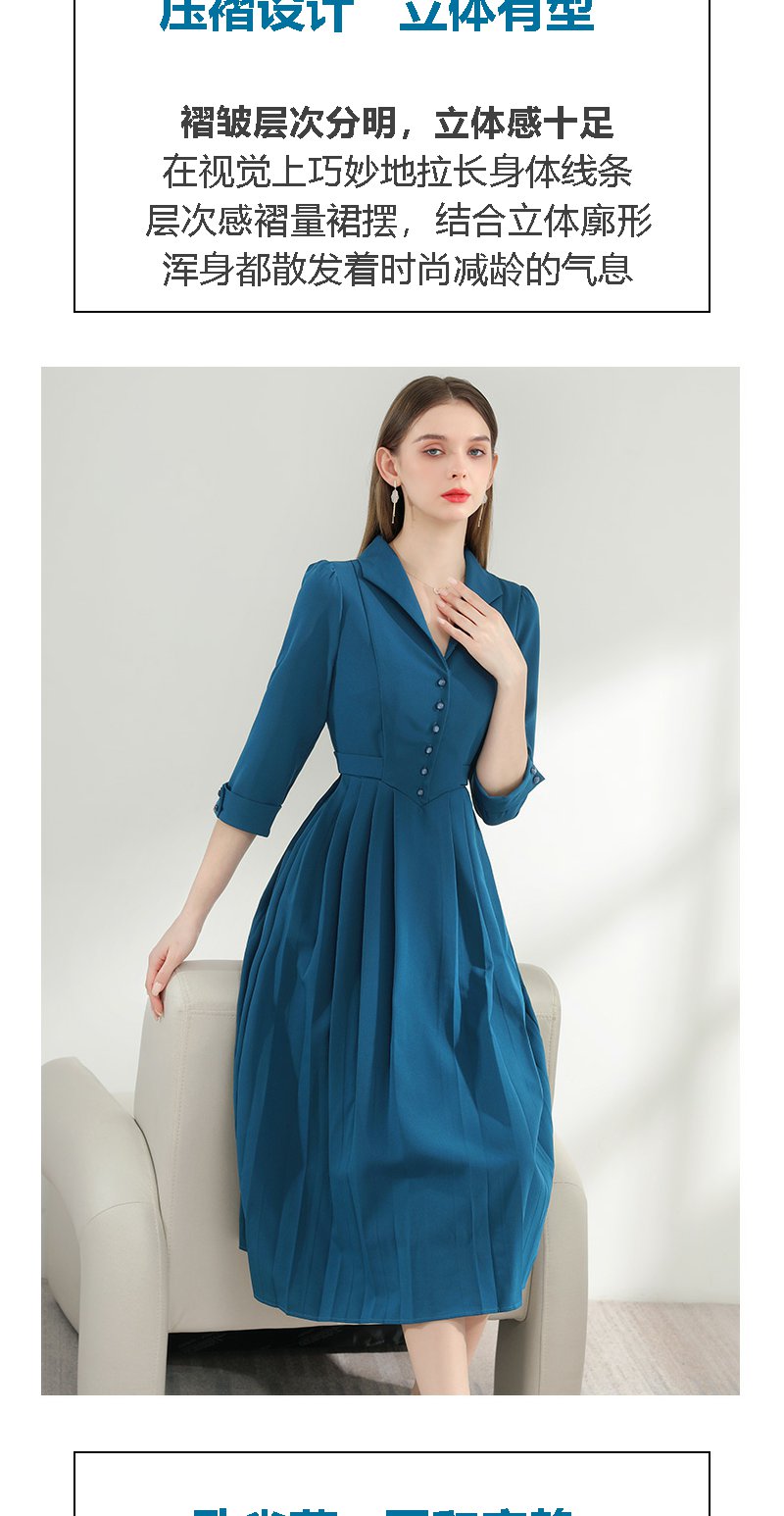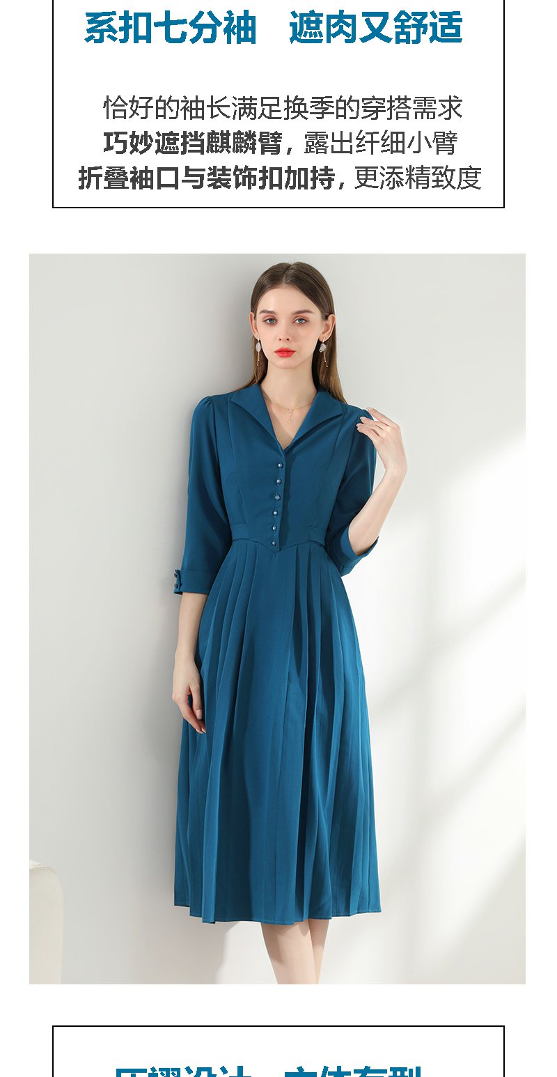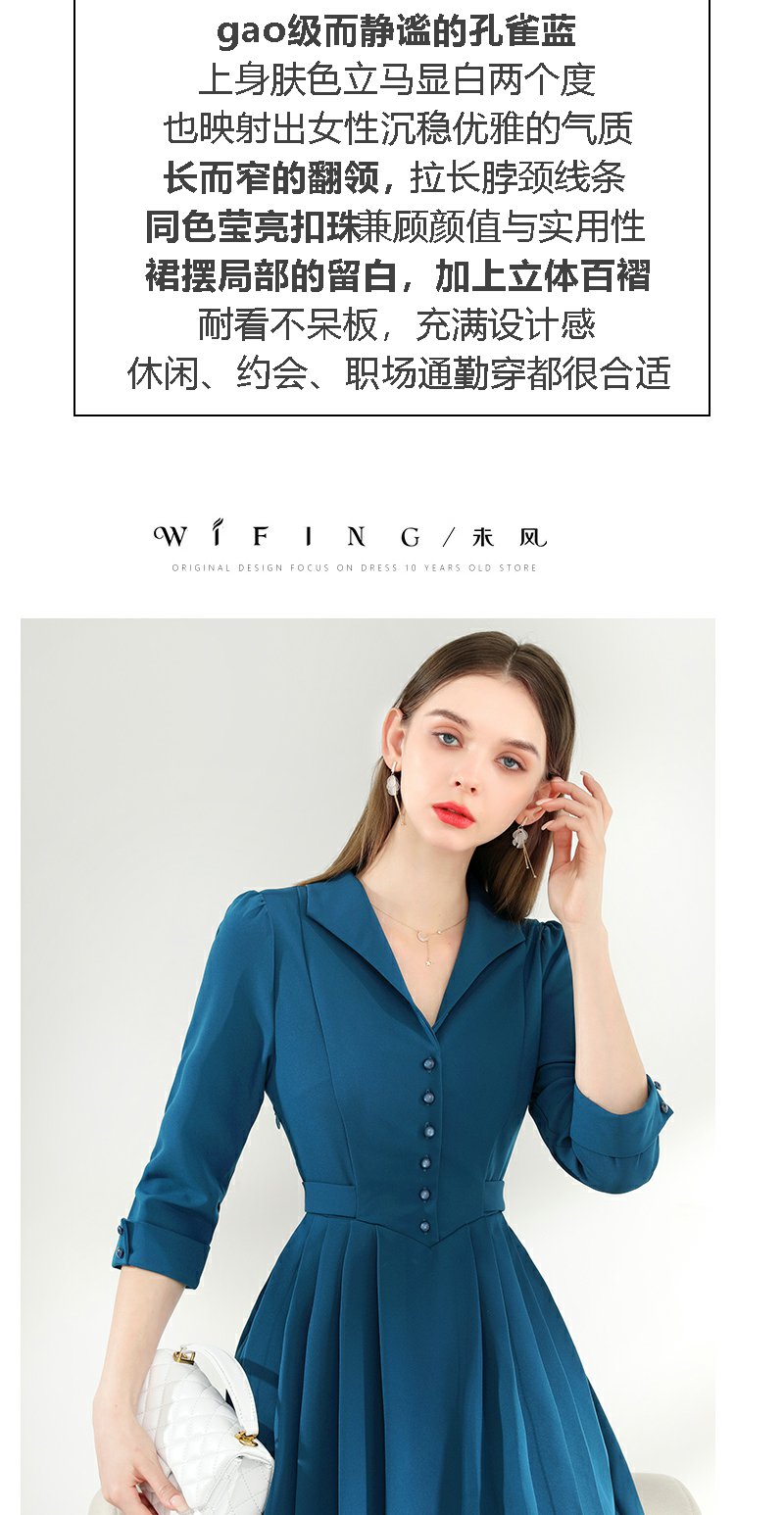 未风西装领连衣裙女春2024年春装新款女装气质显瘦七分袖长款裙子