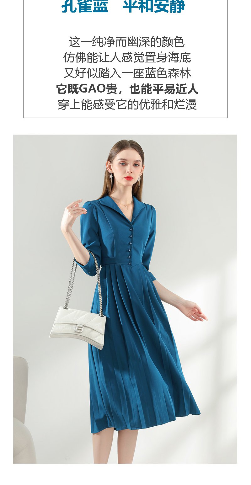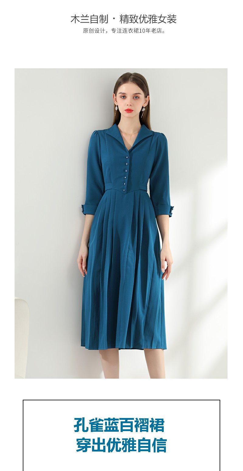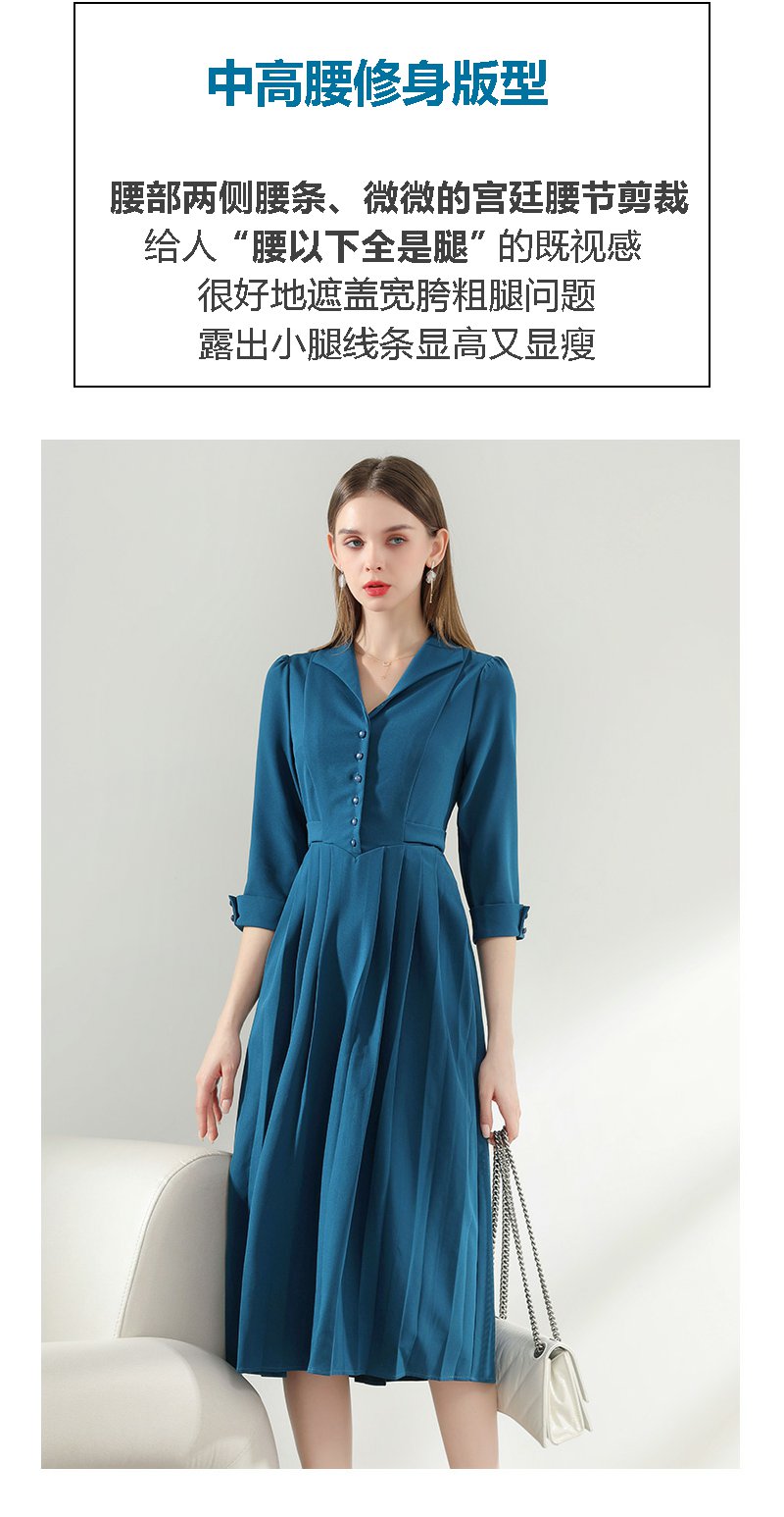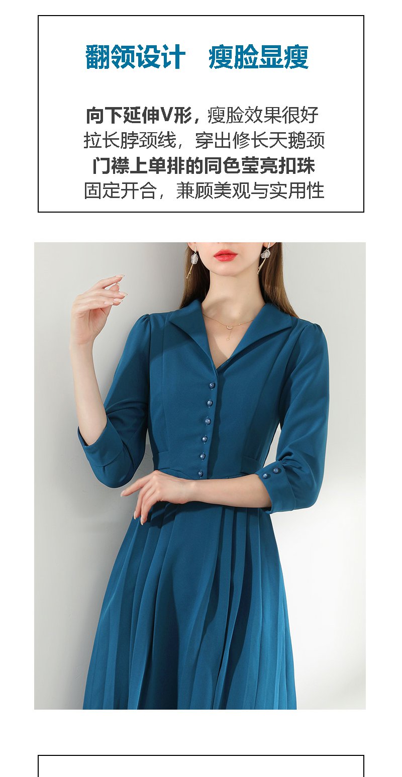未风西装领连衣裙女春2024年春装新款女装气质显瘦七分袖长款裙子