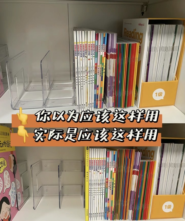 这个亚克力书立架简直了! ✅把底板竖起来,书立架容纳更大,更隐形。书籍可以整体立起来,看着很整齐📚