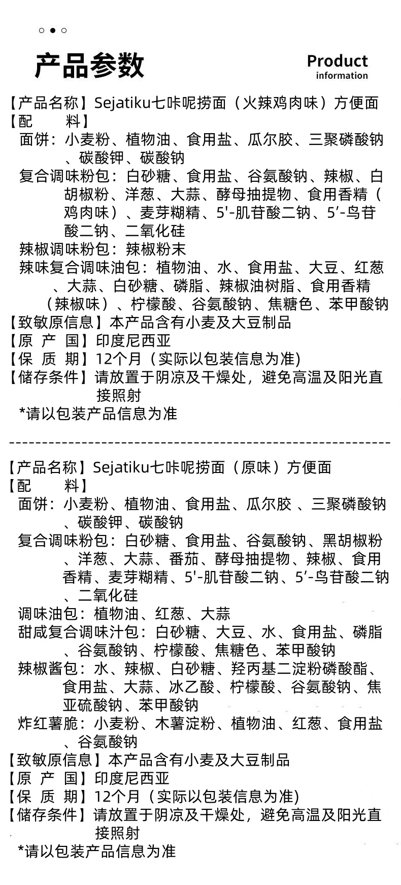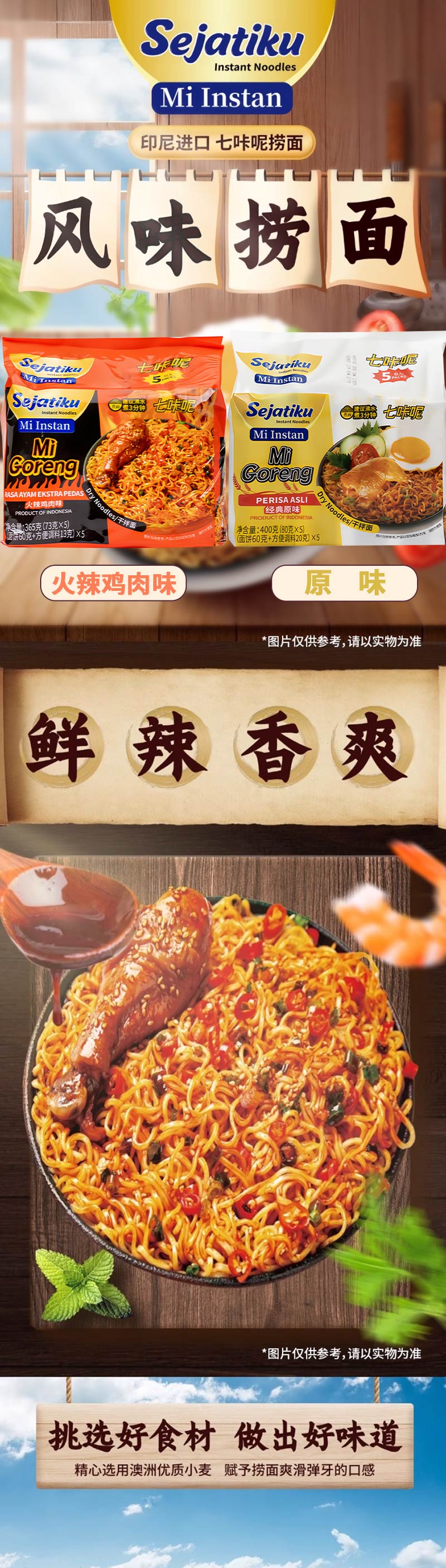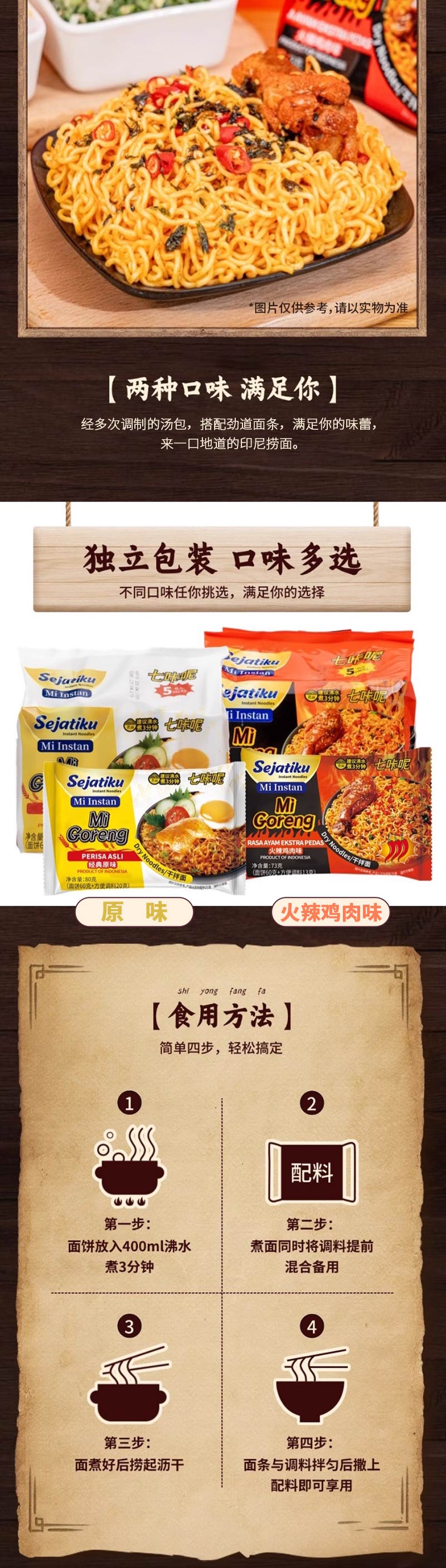 Sejatiku七咔呢捞面火辣鸡肉味|原味方便面365-400g(印度尼西亚)