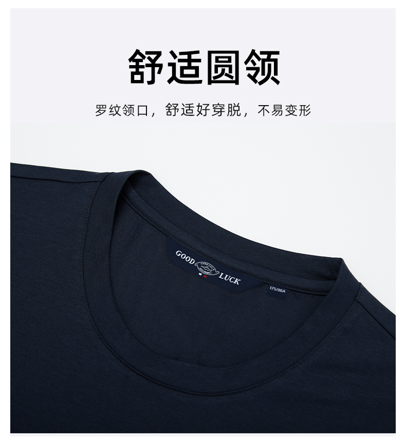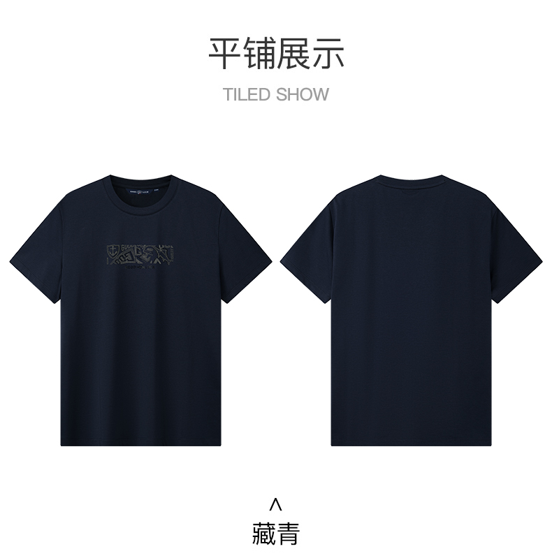 【棉混纺】德鲨黑色短袖圆领T恤男2026夏款休闲上衣打底衫