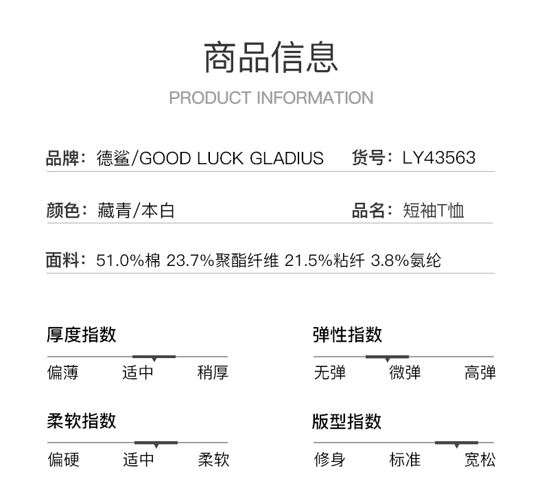 GOOD LUCK GLADIUS品牌由“浙江德鲨服饰有限公司”引进中国市场,经过多年发展,凭借完善的终端形象,规范化的销售管理,迅速赢得消费者的认可,引领国内消费流行,是成功人士首选男装品牌。