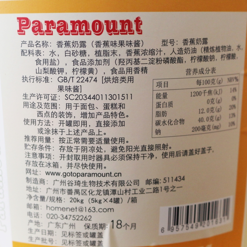 5kg 古田至尊 香蕉奶露 香蕉味果味酱 烘焙蛋糕慕斯涂抹糕点餐包面包夹心果味酱