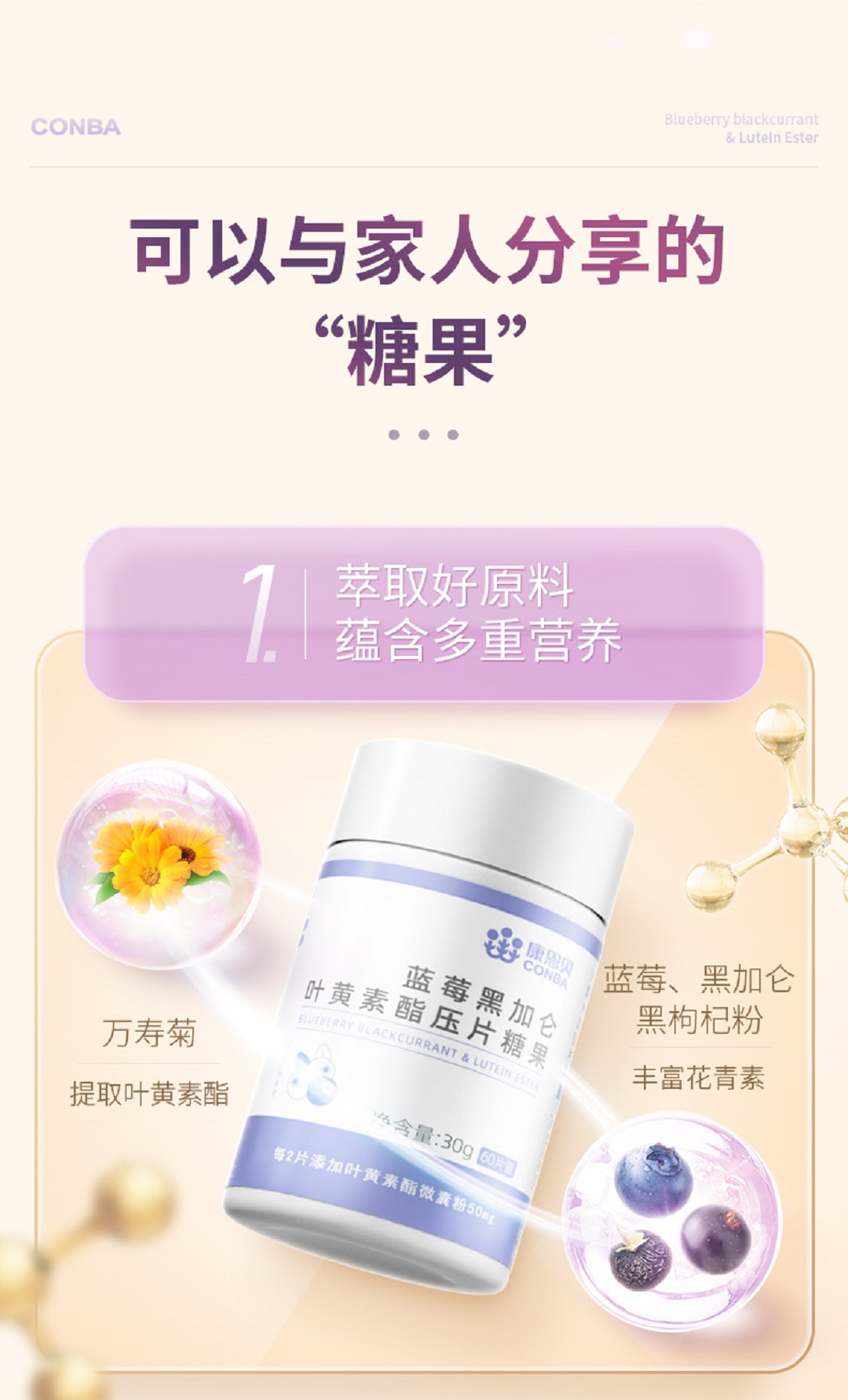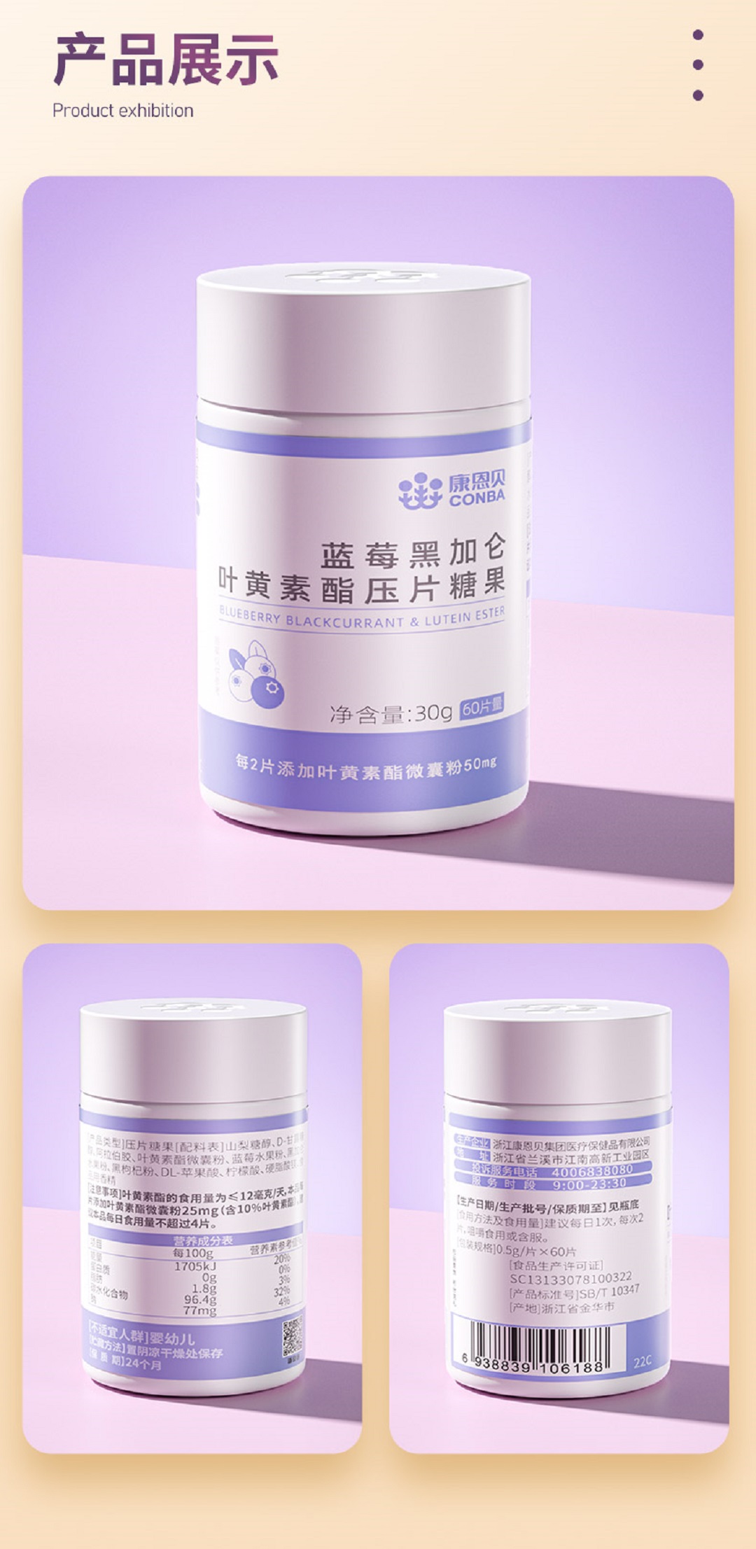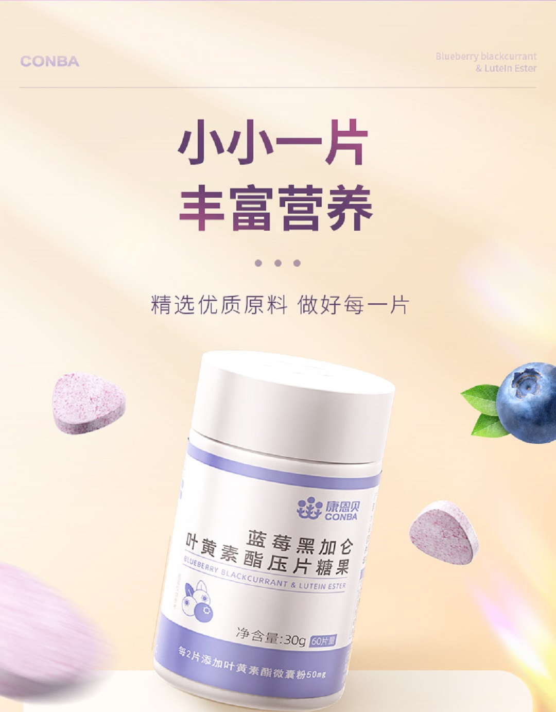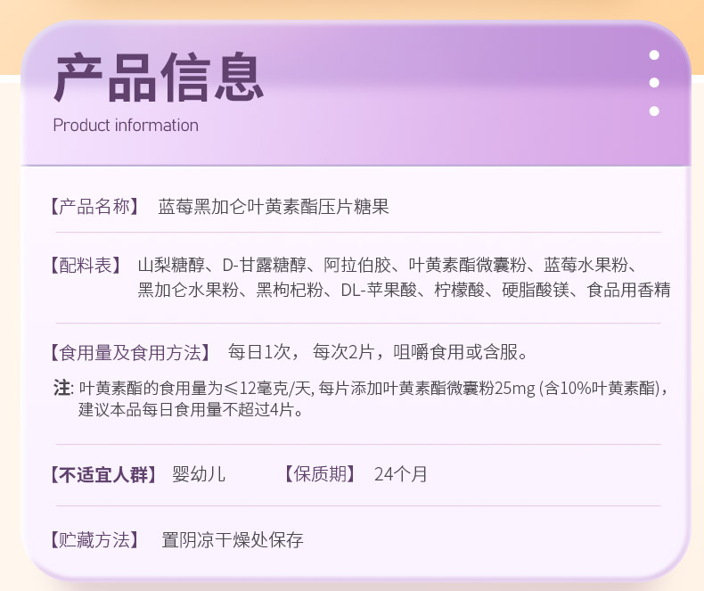蓝莓黑加仑叶黄素酯压片糖果 60粒