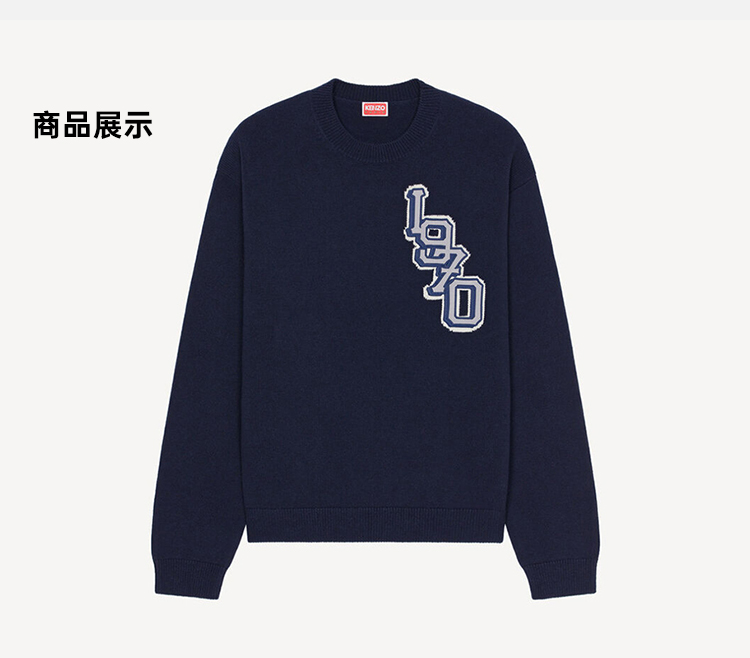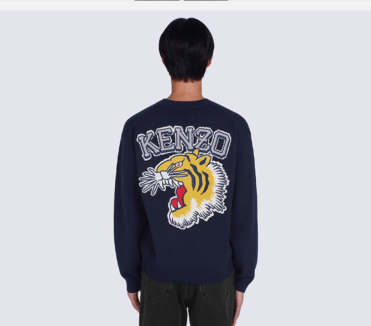 KENZO 高田贤三 男士老虎图案印花圆领长袖羊毛混纺针织衫 深蓝色 FC65 PU316 3BC 77