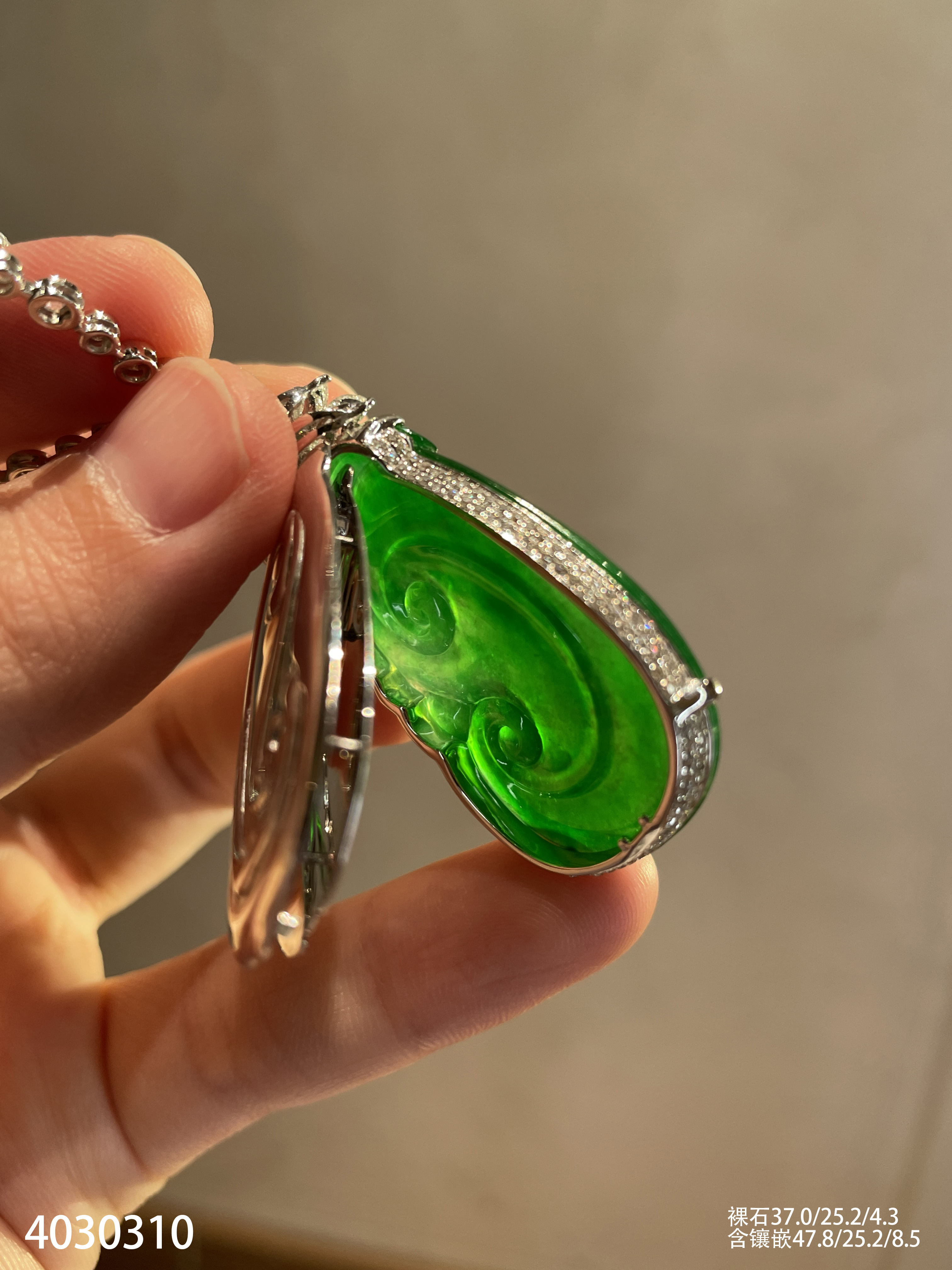 玻璃种帝王绿蛋面耳坠【6023104】具体价格微信咨询