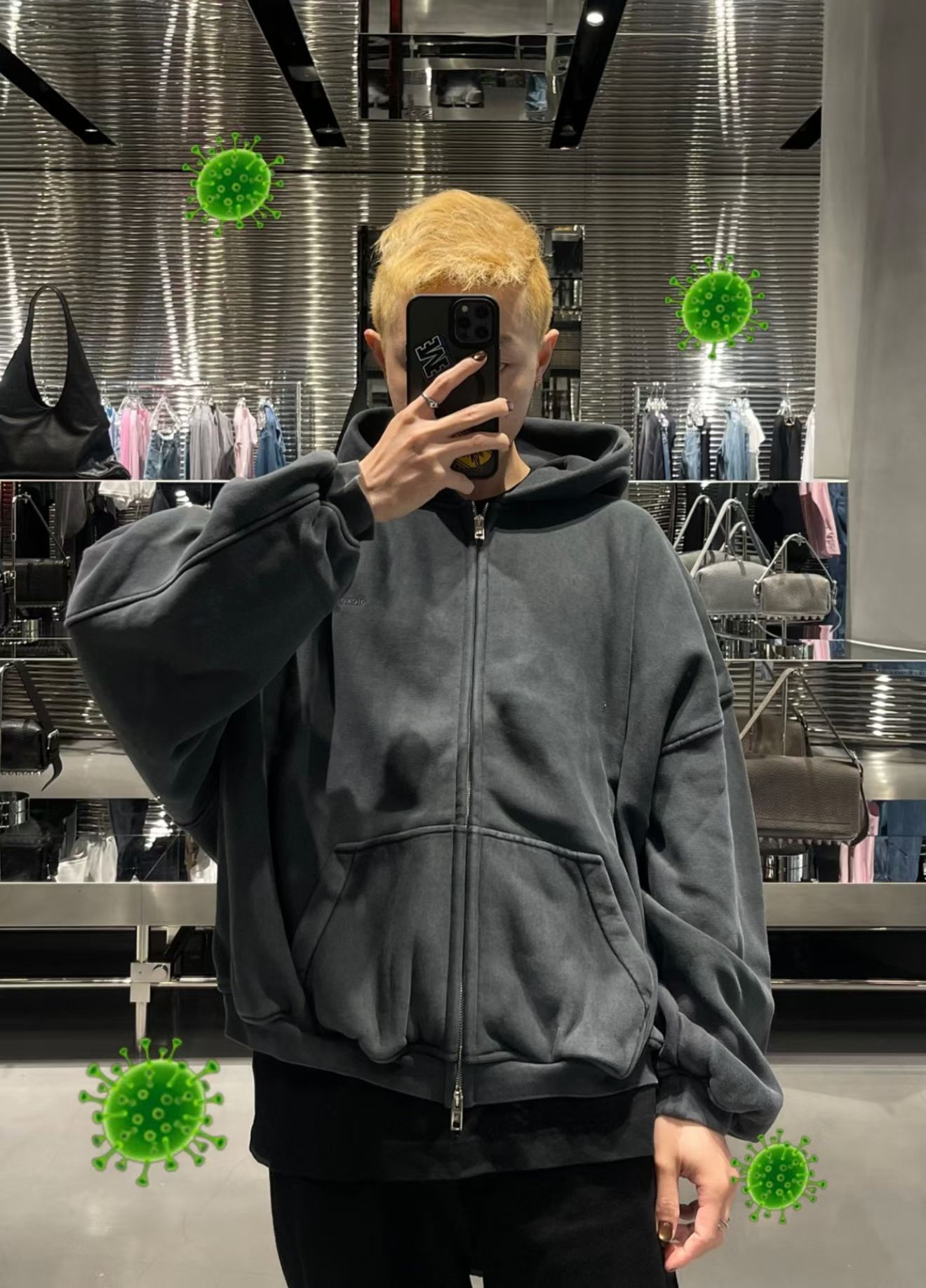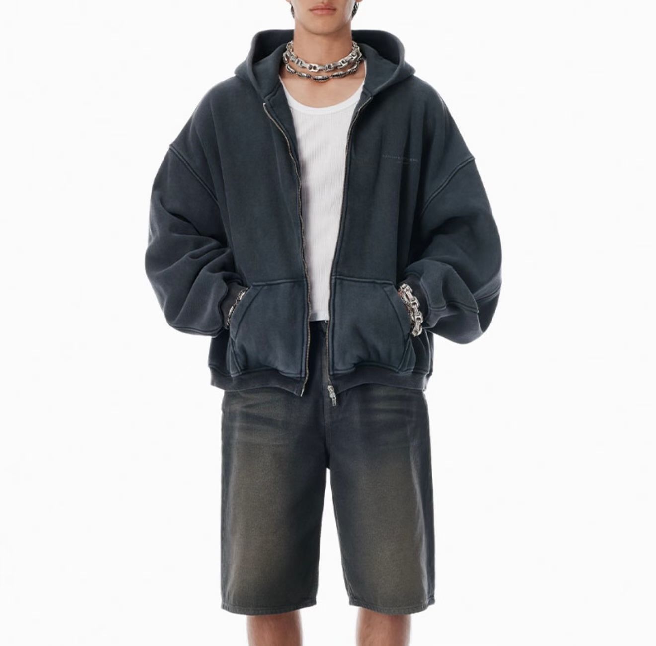 宽松落肩潮牌版型!高克重毛圈水洗面料舒适有型!胸前字母精致刺绣,背面字母印花设计。