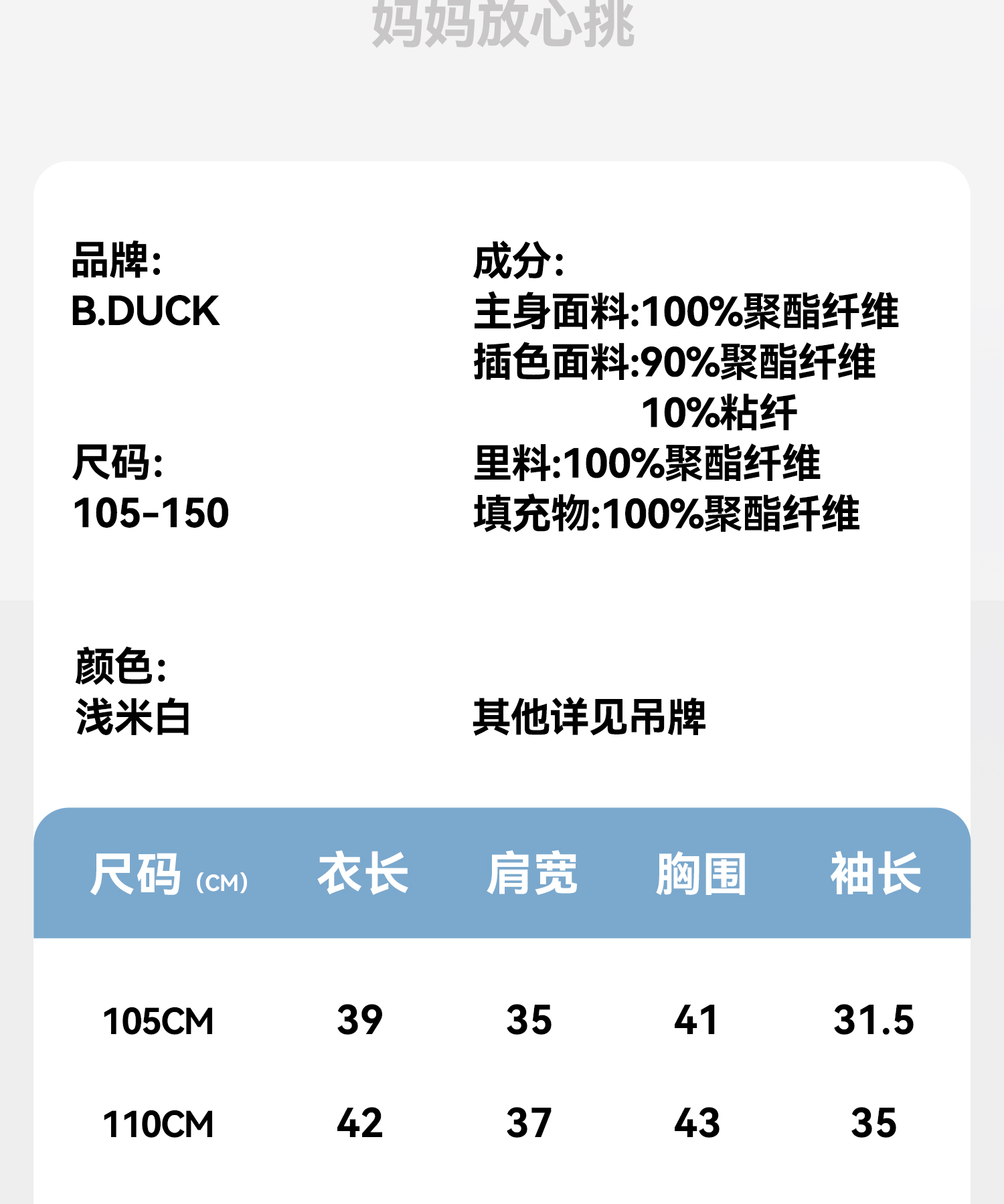 B.Duck小黄鸭童装冬季外套105-150 FF5533001