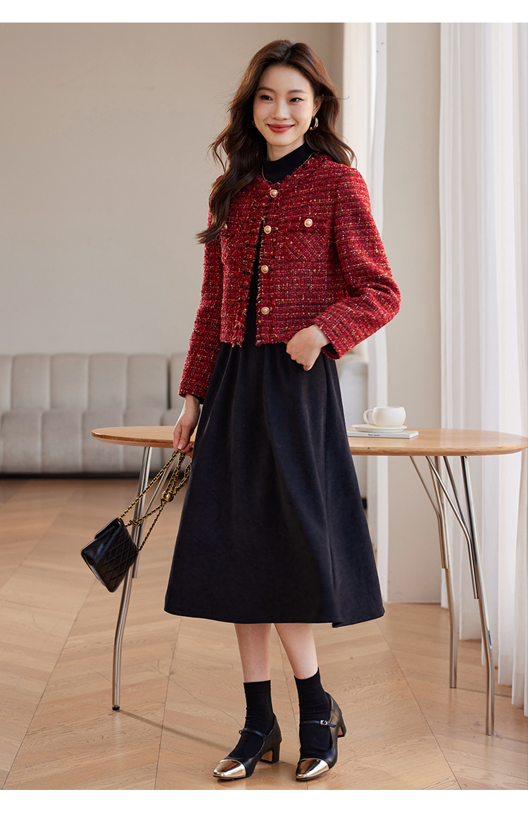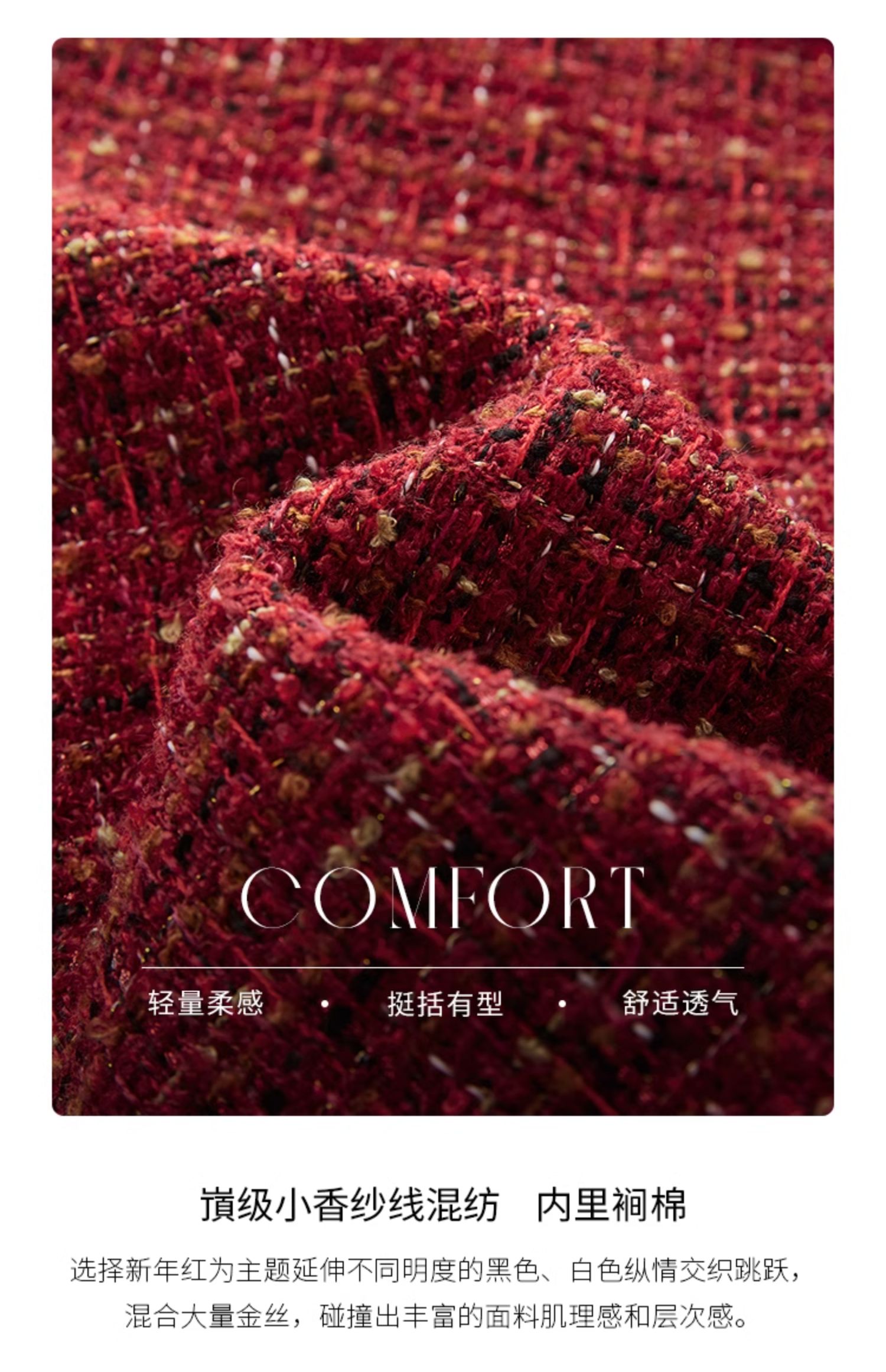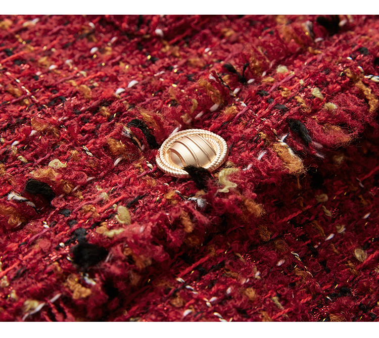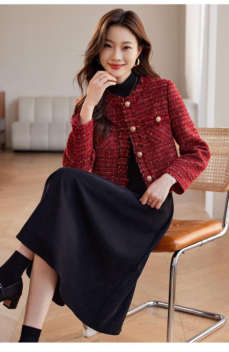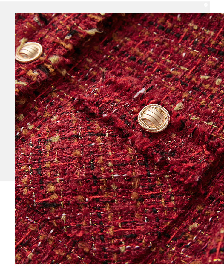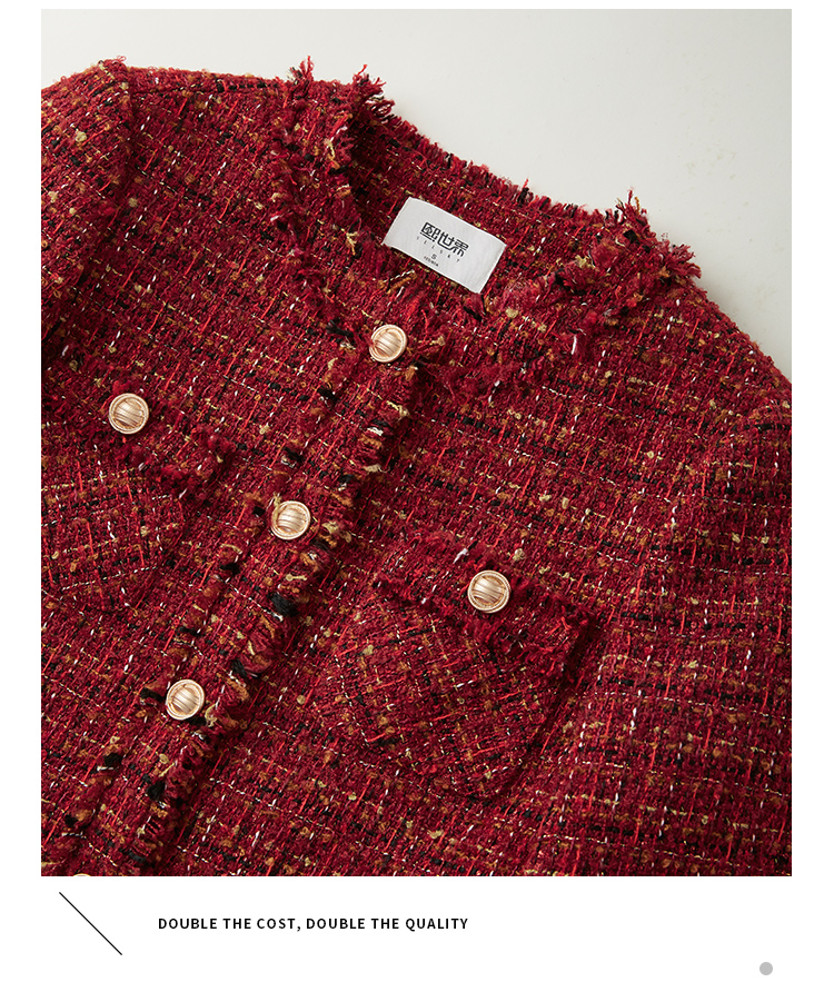 【年货节】熙世界2025过年小香风夹棉短款外套女秋冬法式气质名媛粗花呢红色上衣