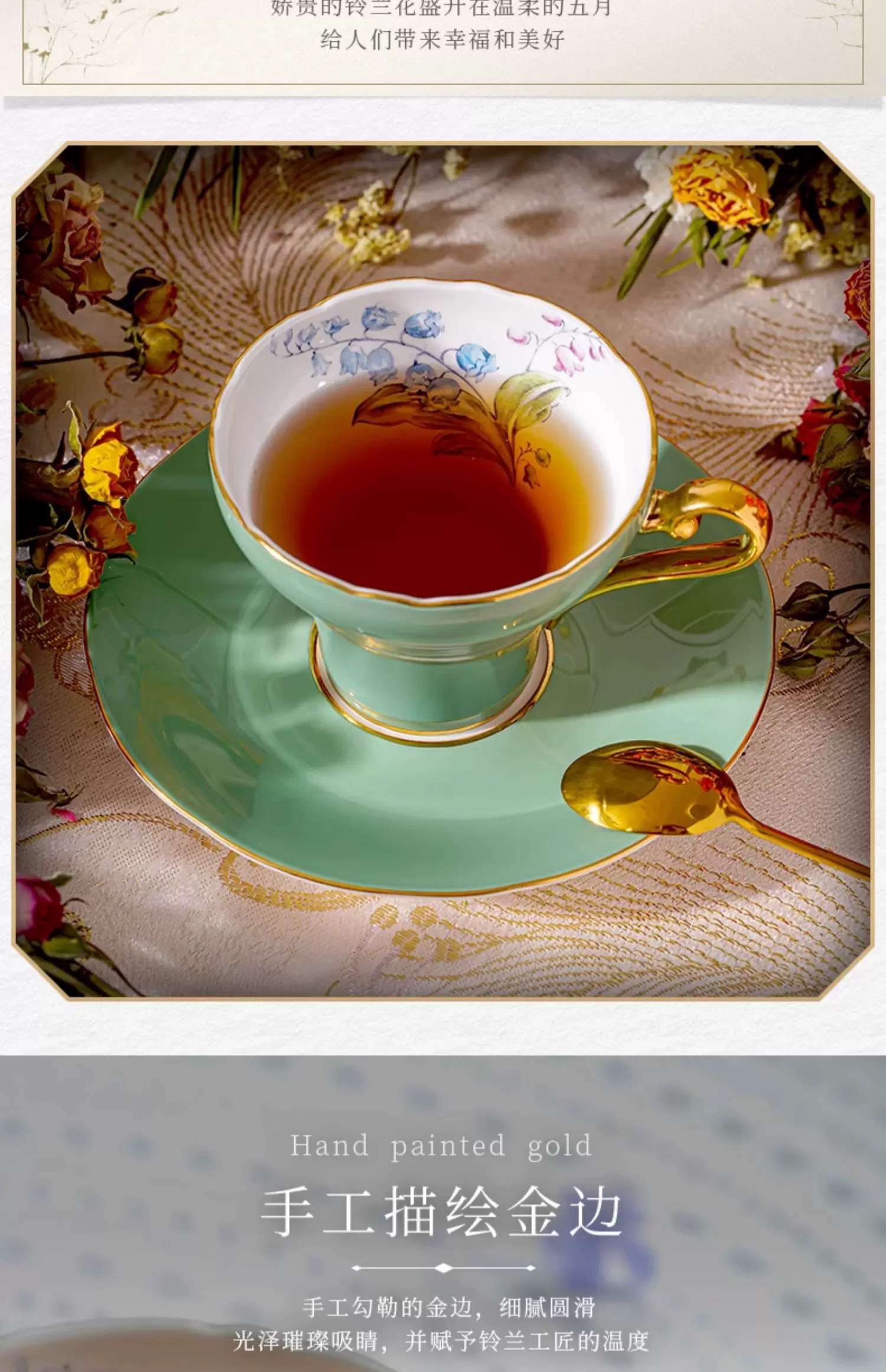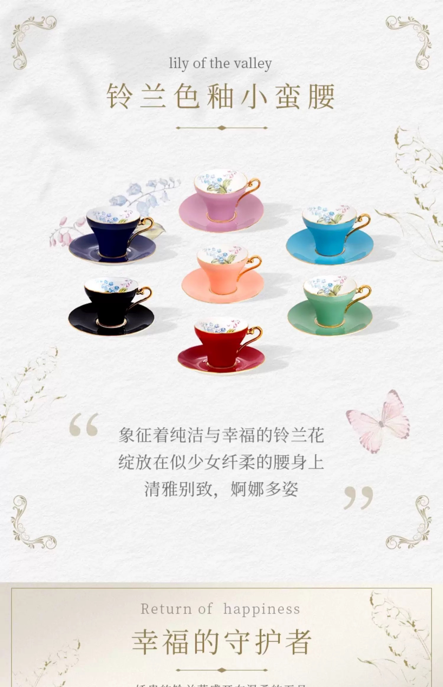英国Aynsley安斯丽色釉铃兰骨瓷咖啡杯英式下午茶对杯子礼盒套装