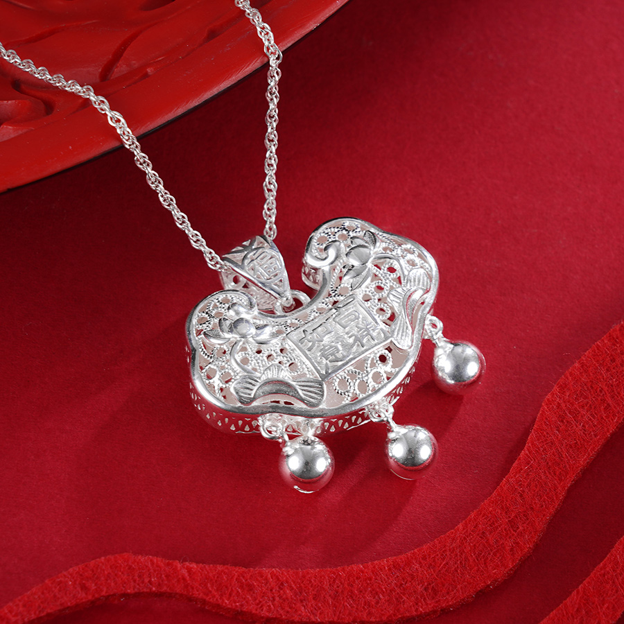子佩集S990银儿童长命锁【CM4011-5】花丝套链项链2402