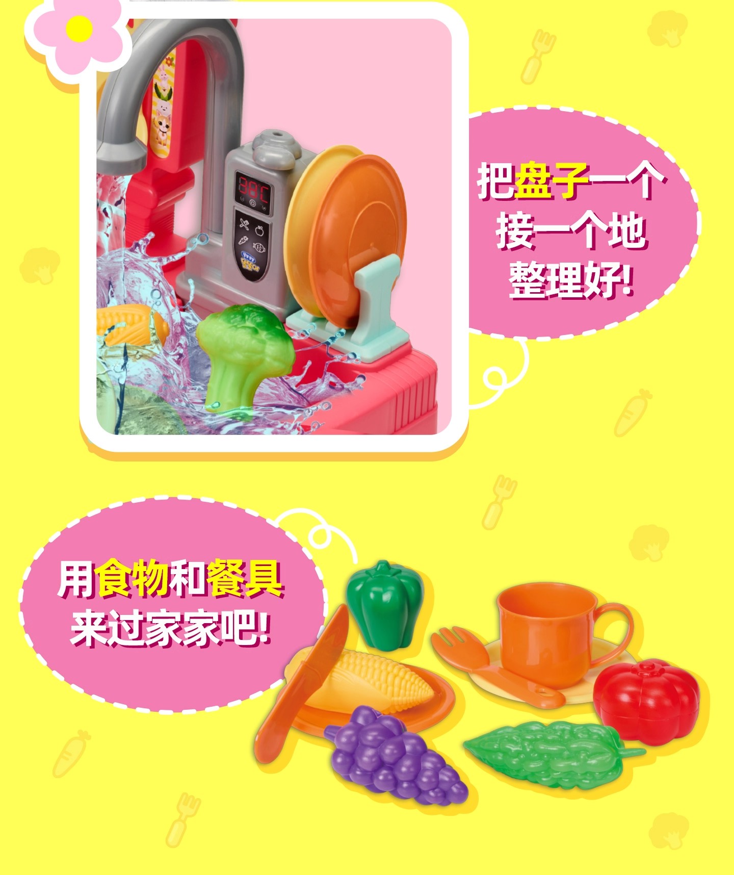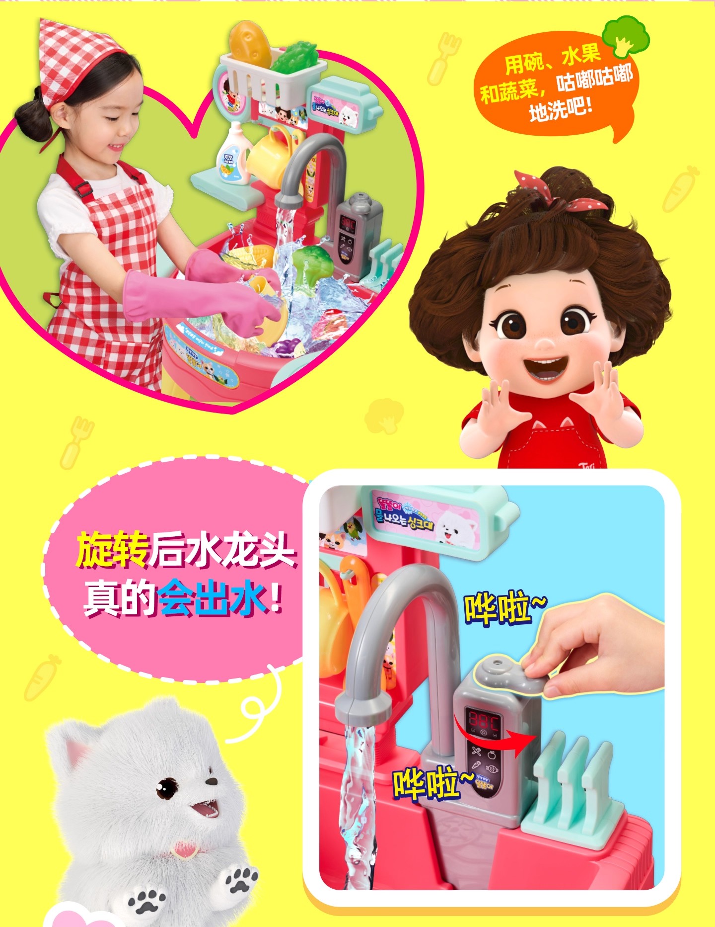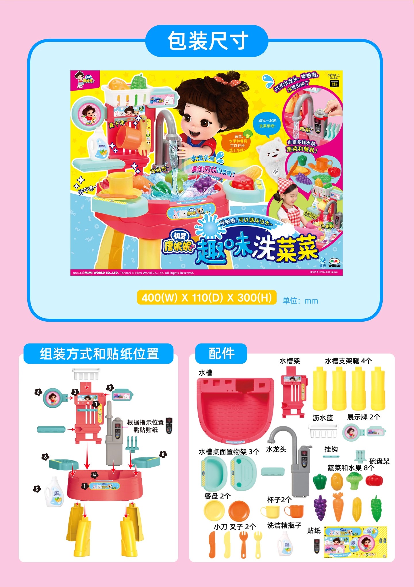 MIMIWORLD 机灵唐妮妮-趣味洗菜菜 女孩过家家玩具生日礼物3岁+
