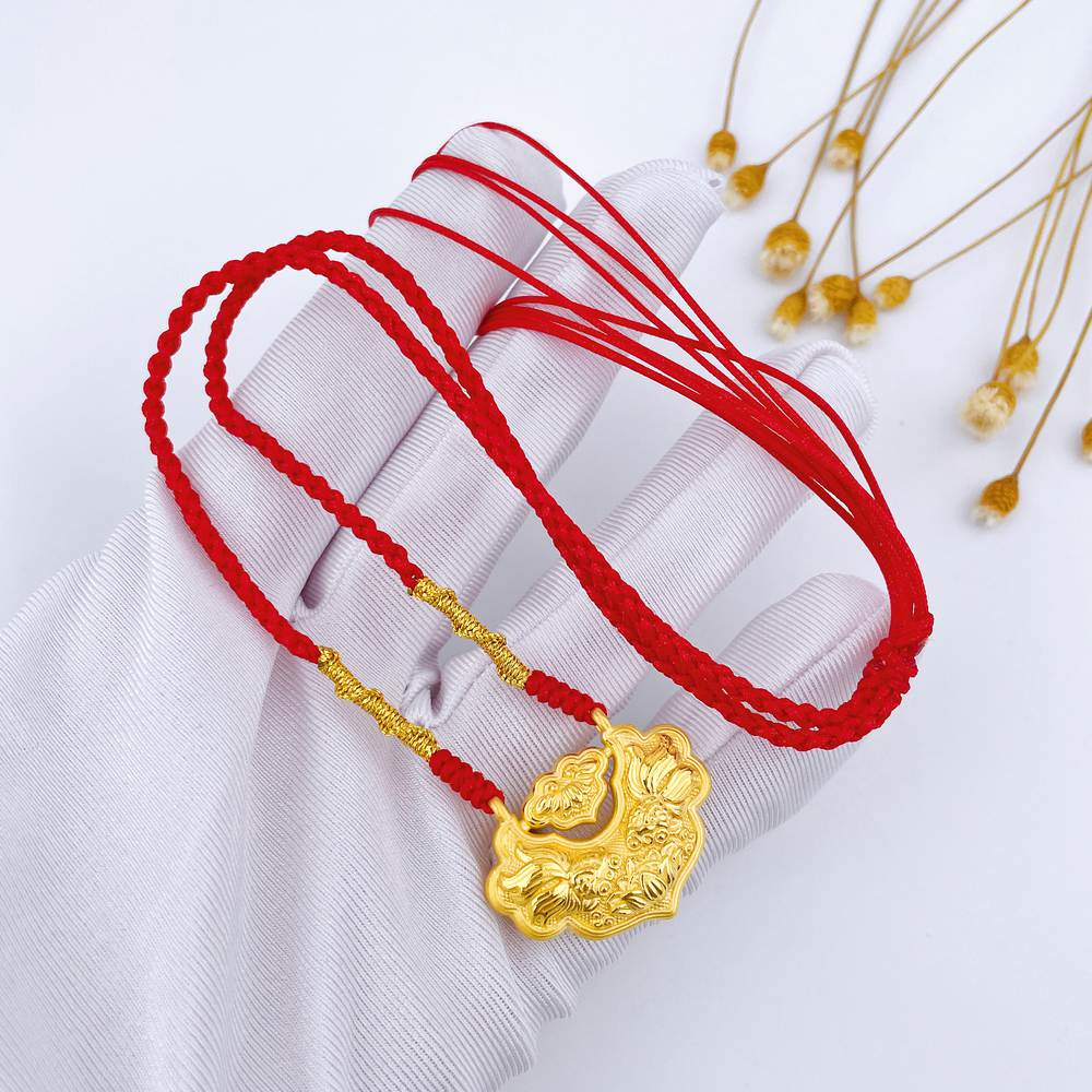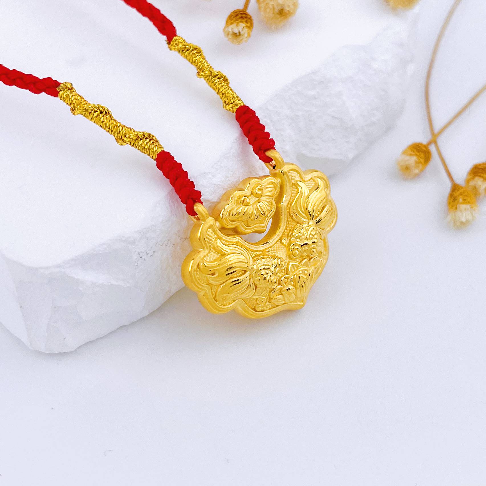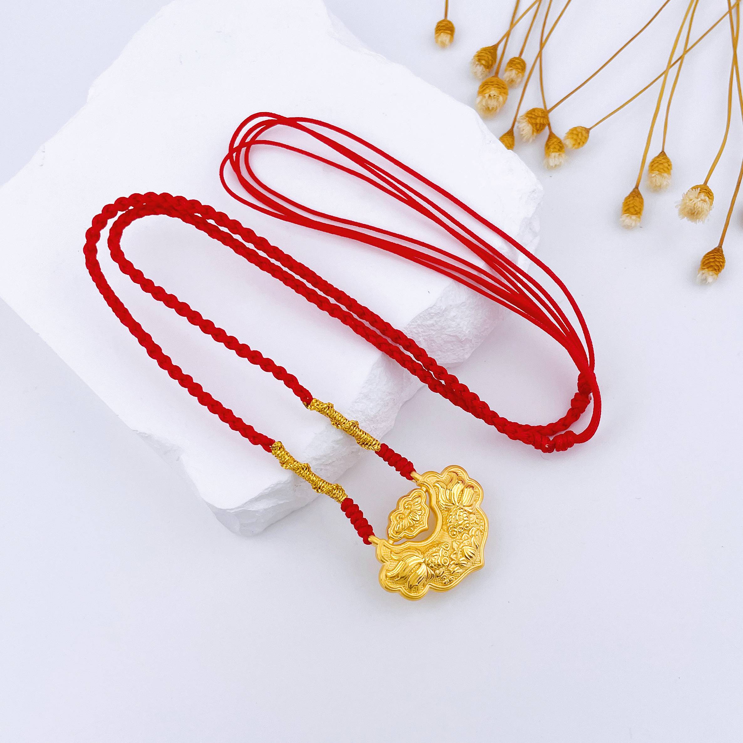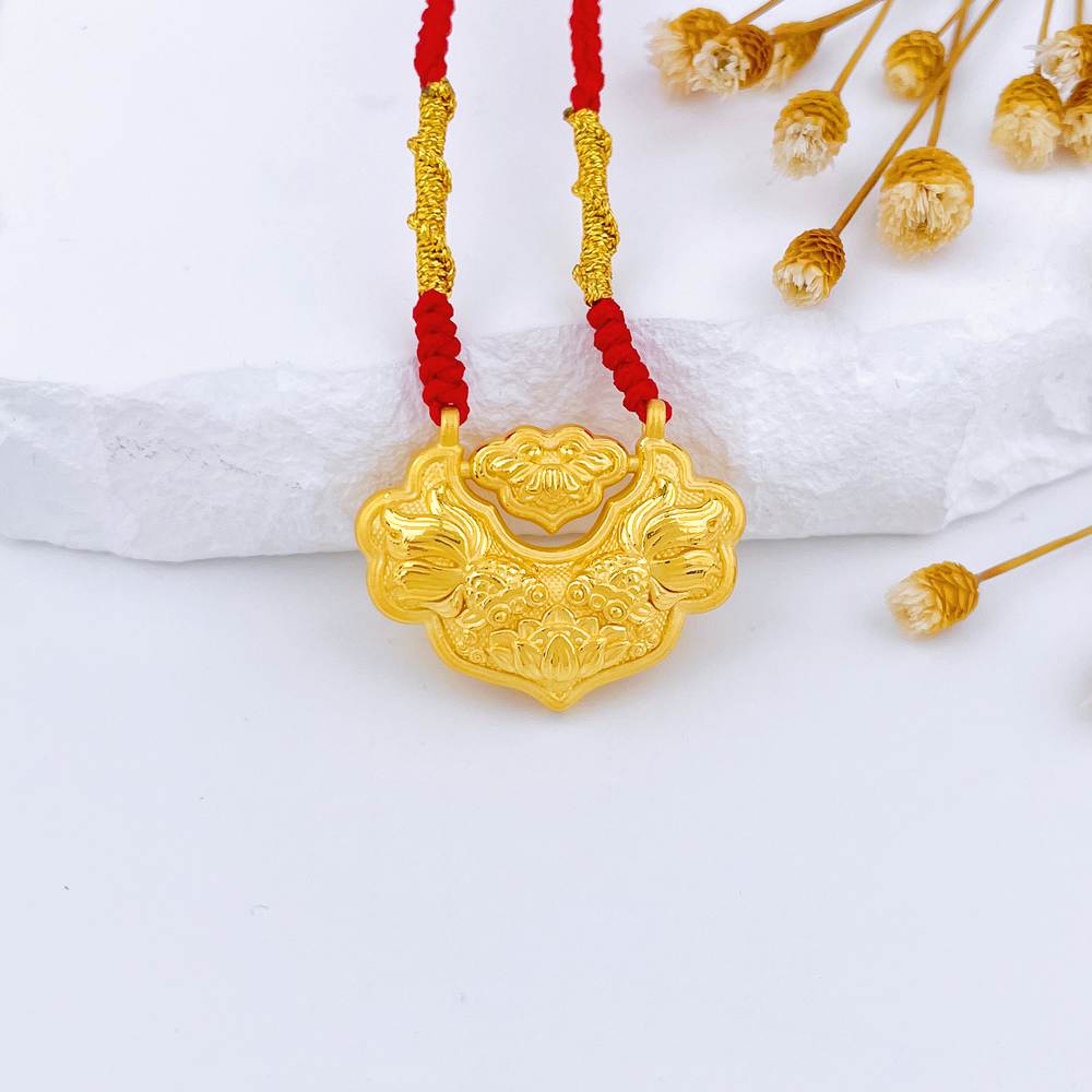 【限时7.5折】【定价黄金】足金 #儿童/宝宝 3D硬金双面连年有余双鱼锦鲤锁包莲花平安如意锁包空心挂绳吊坠成品项链(大人也适戴)(AA3DDZ00030)(预售产品下单后不退款不退货不换货不补差价)