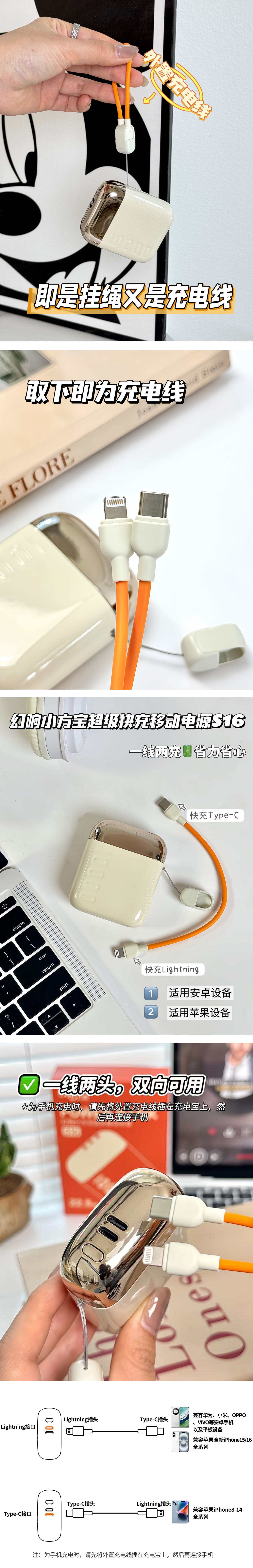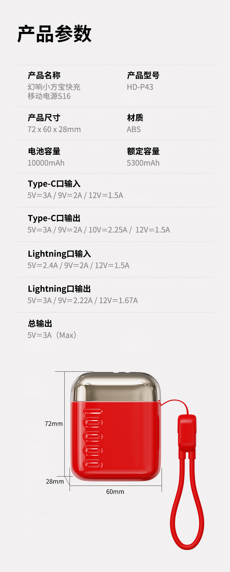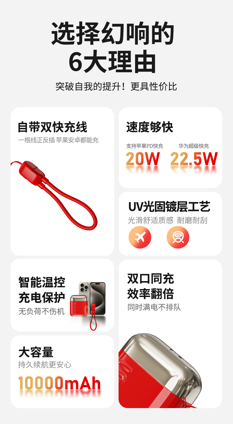 【89元到手!新年限定】幻响S16红色小方宝移动电源22.5w快充充电宝充电聚合物轻薄便携大容量适用于小米苹果