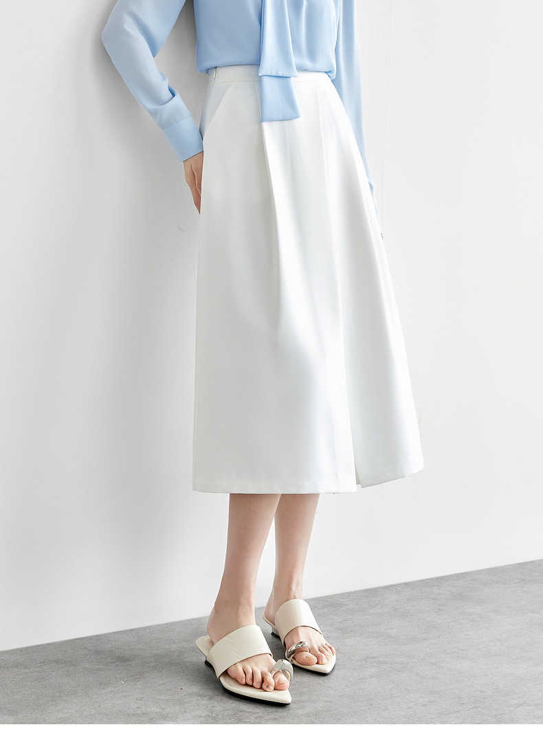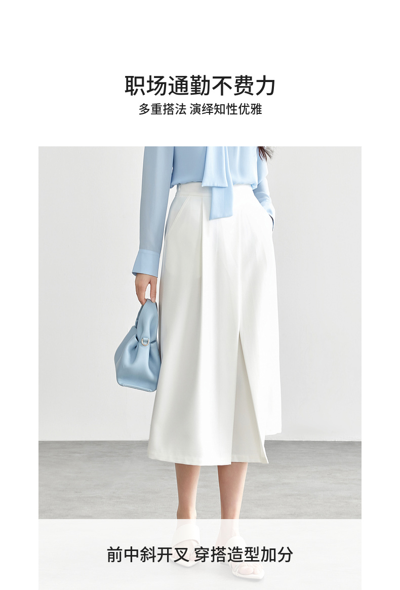 【内购】都市通勤优雅显瘦松紧高腰前中斜开叉中长款A字半身裙-151Q57542