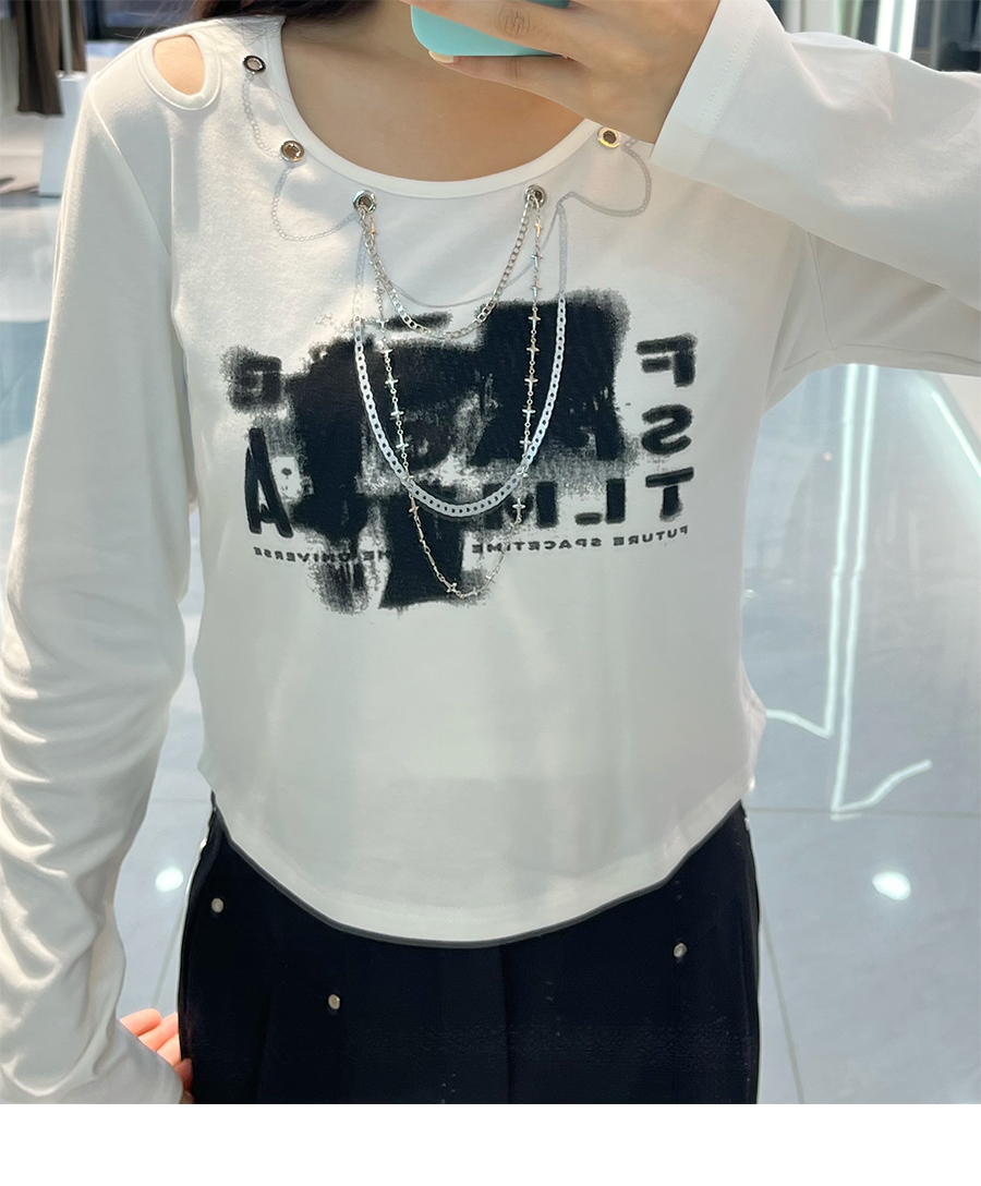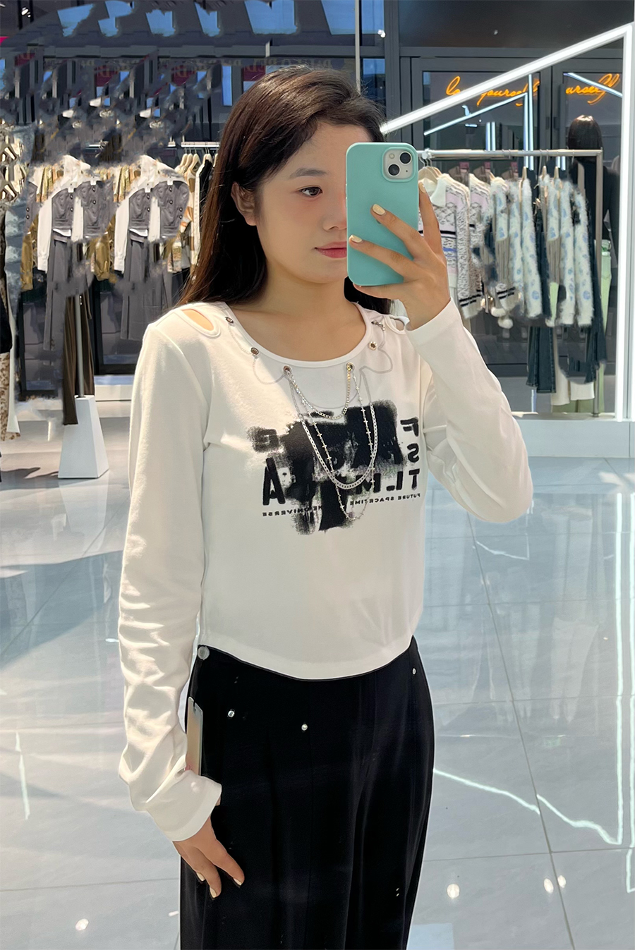 P&X设计师女装秋季针织长袖圆领修身短款T恤 824302176 白色