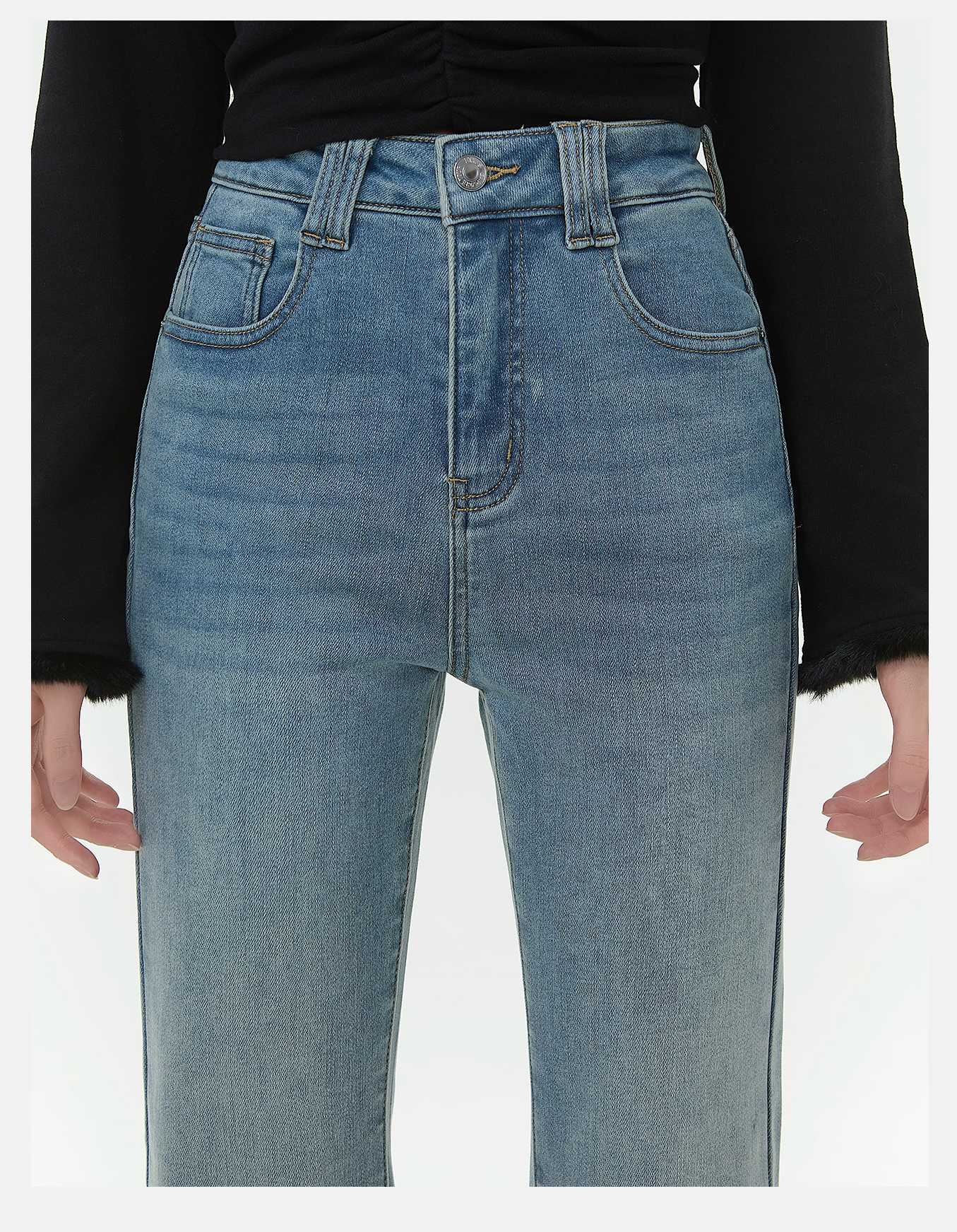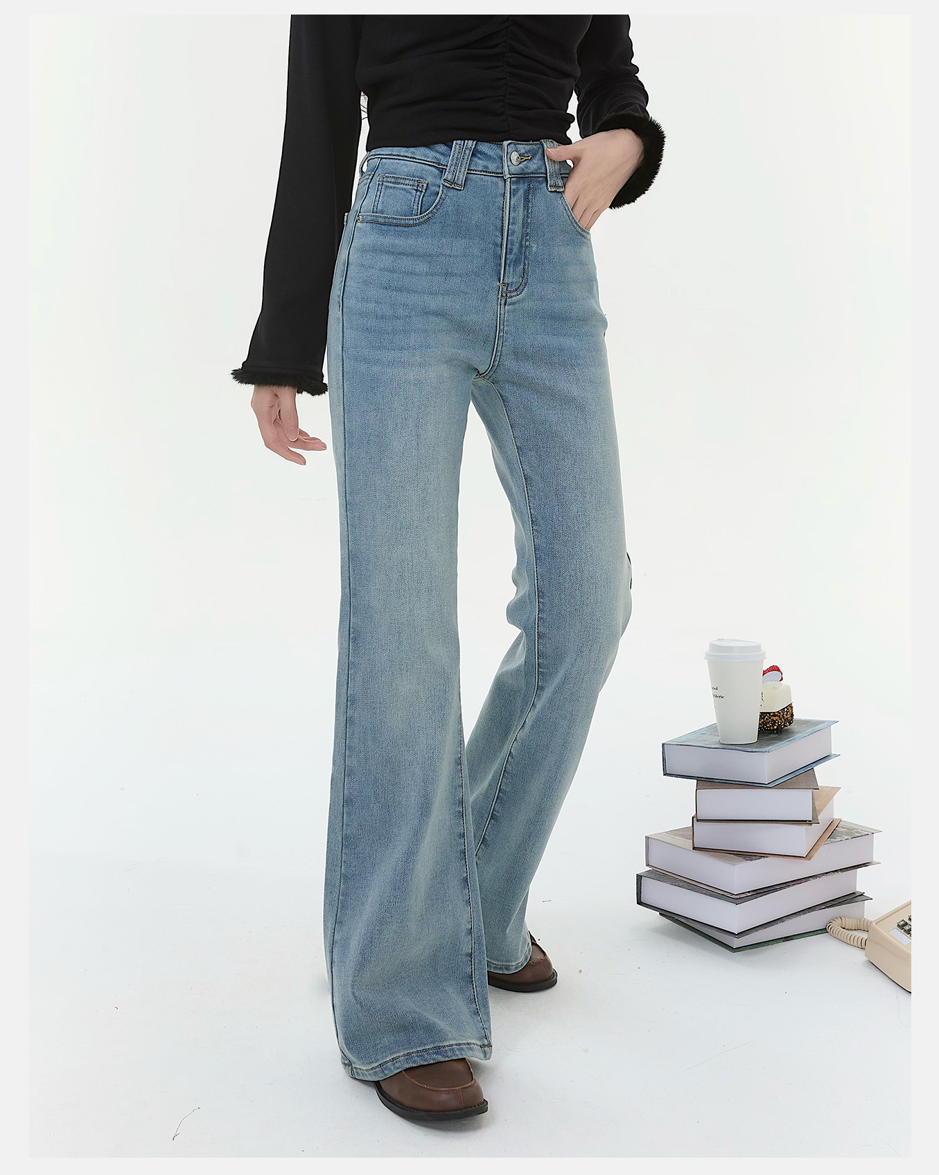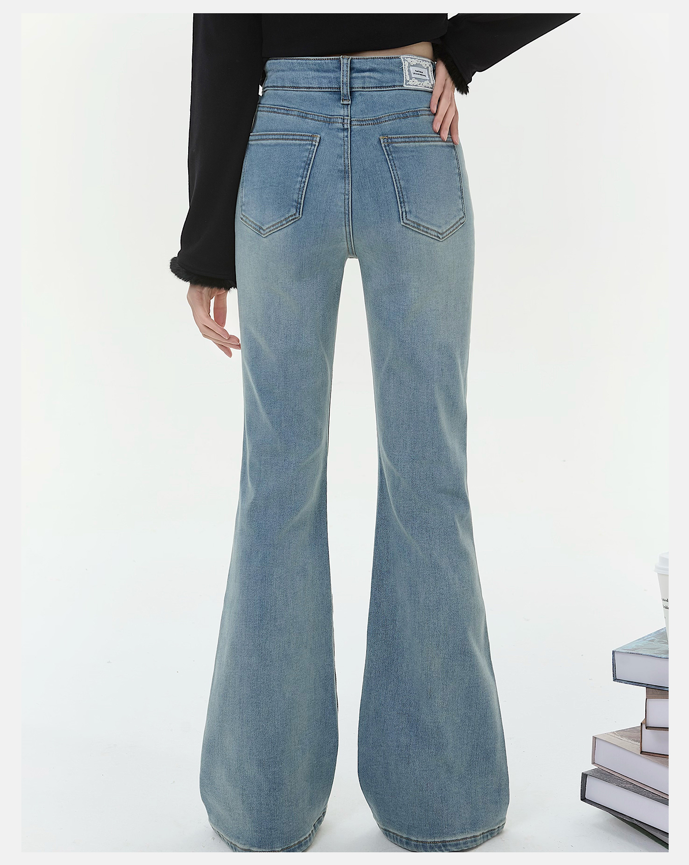P&X设计师女装2025冬季高腰微喇牛仔裤长裤 825410172 蓝色