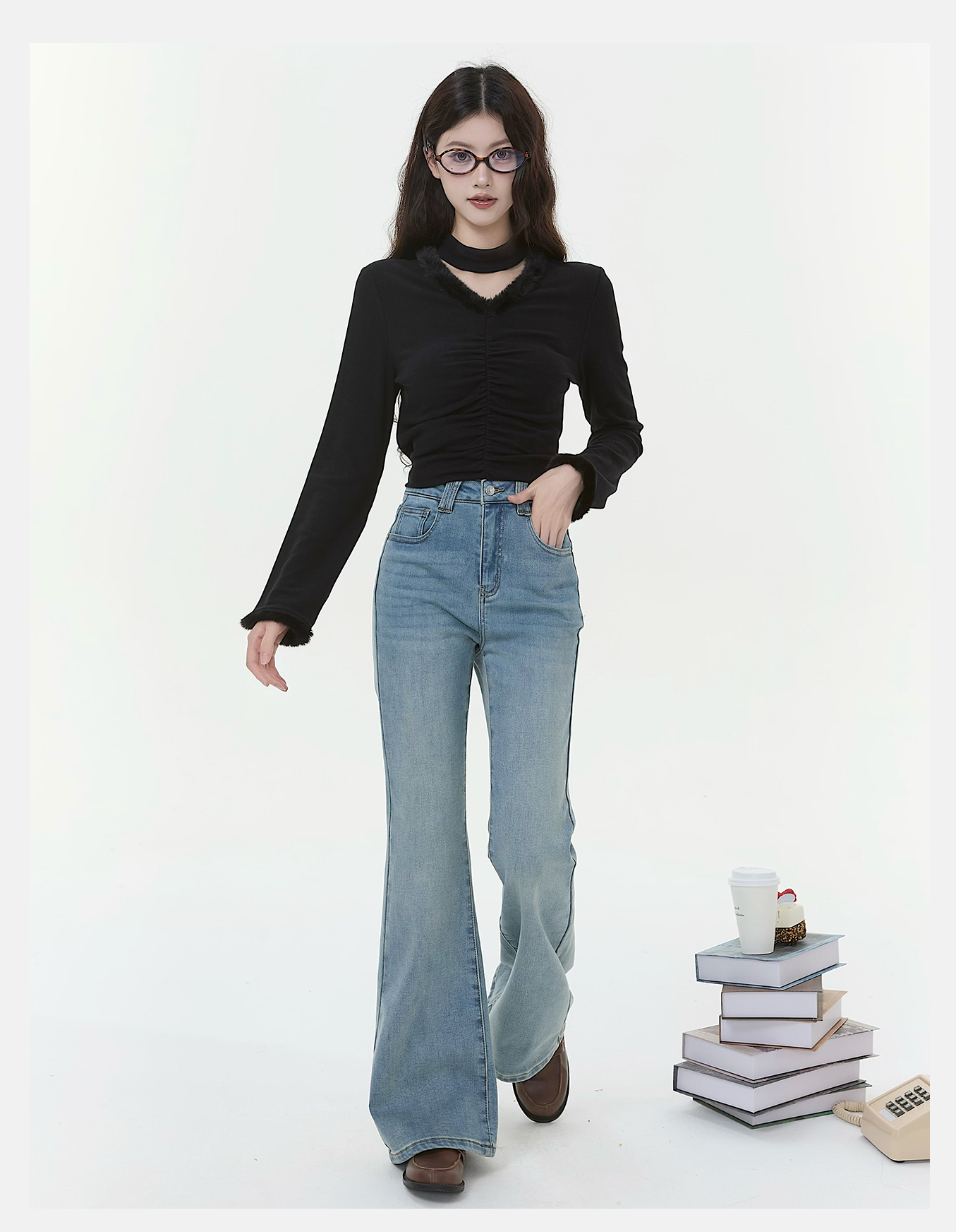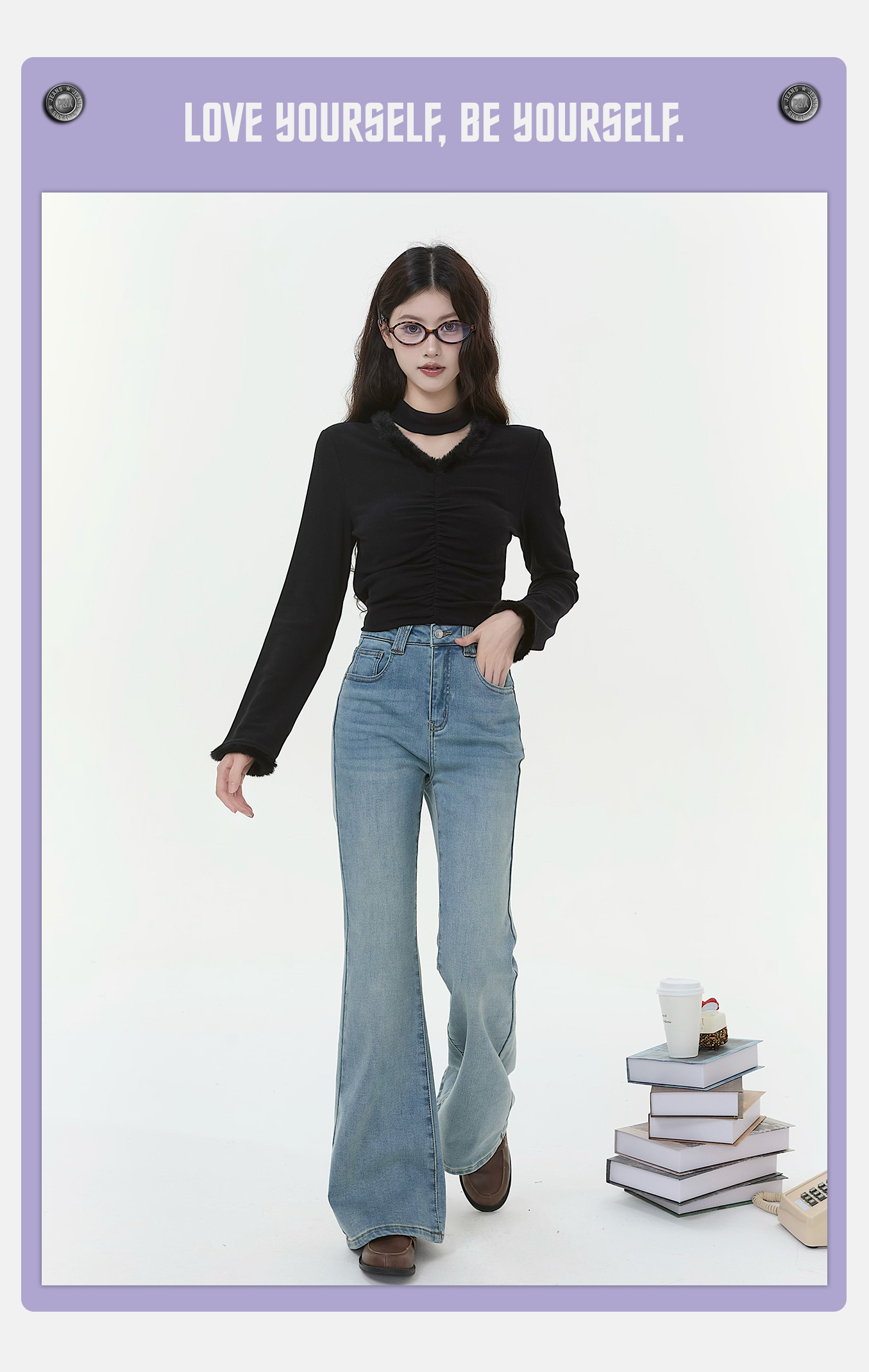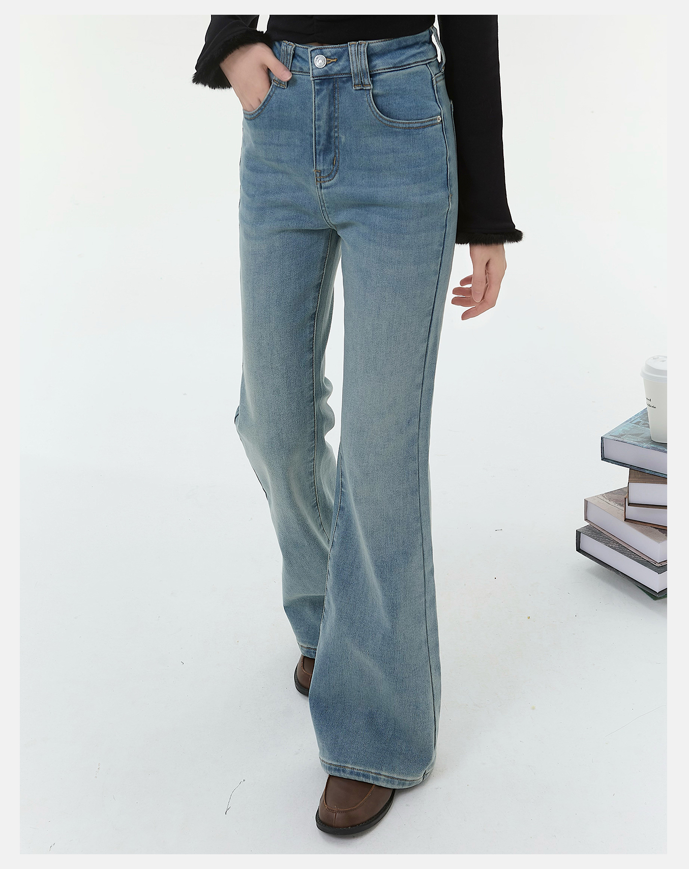 P&X设计师女装2025冬季高腰微喇牛仔裤长裤 825410172 蓝色