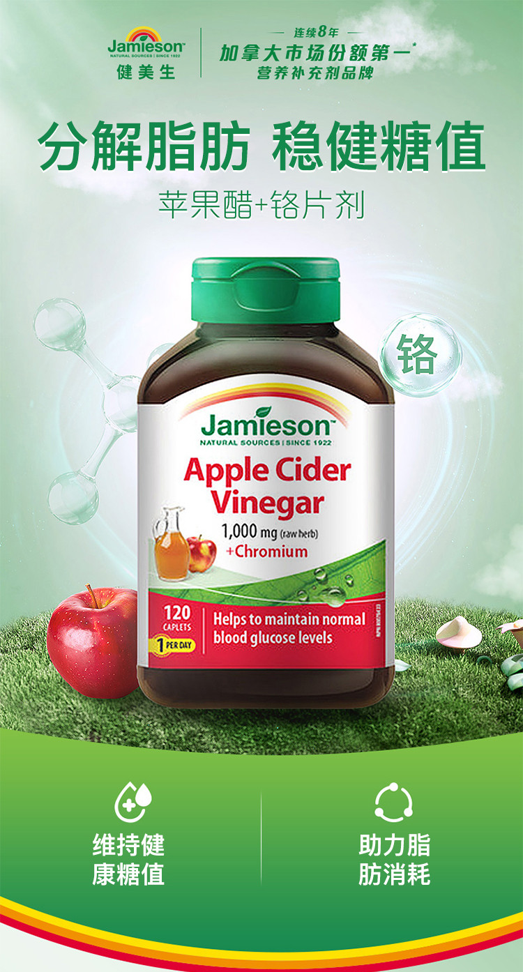 【保税仓直发】健美生苹果醋+铬片剂1000mg 120片