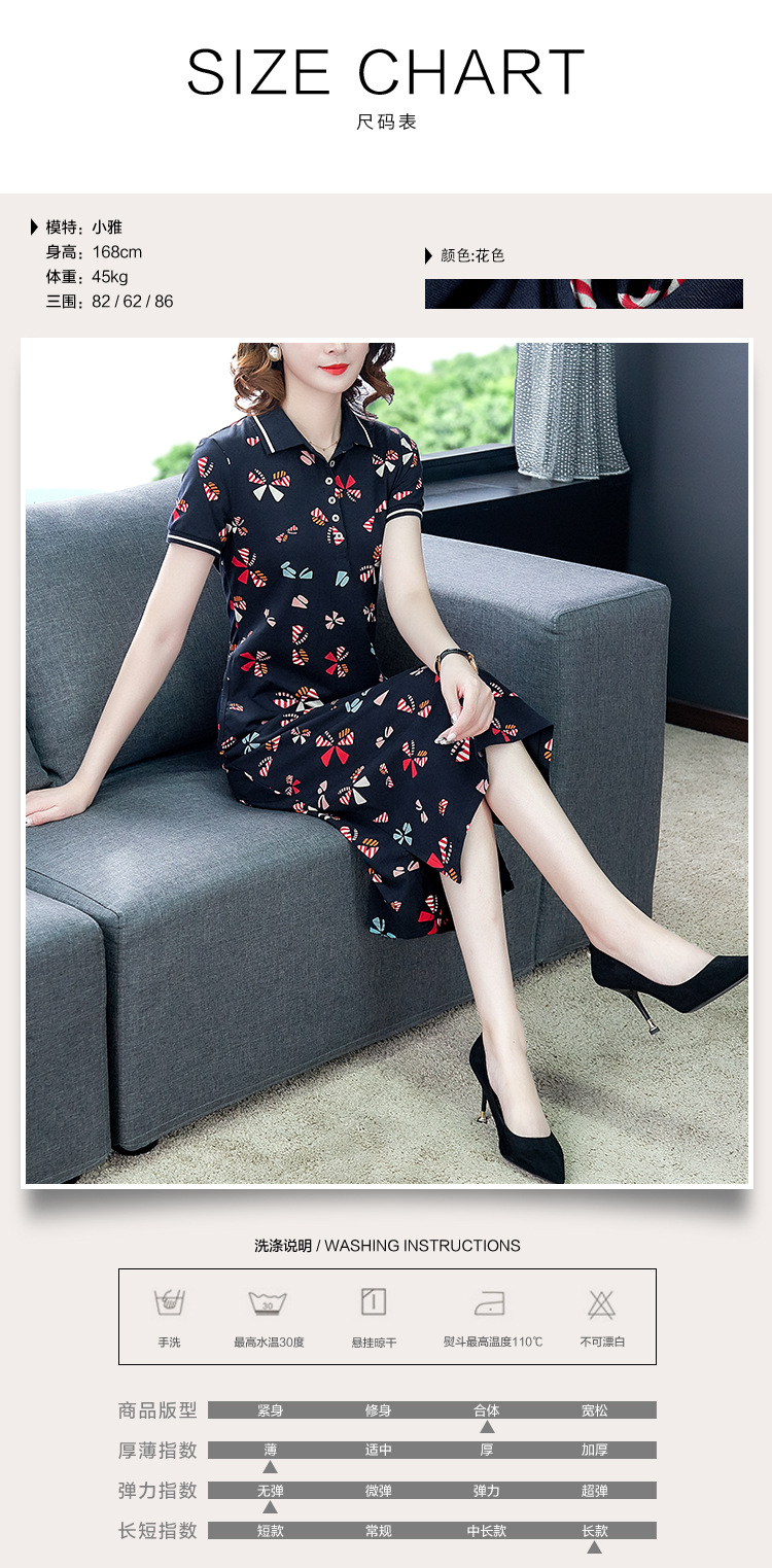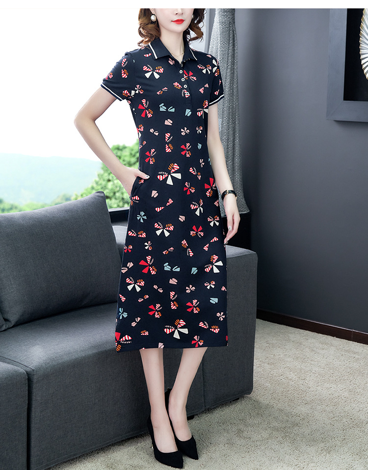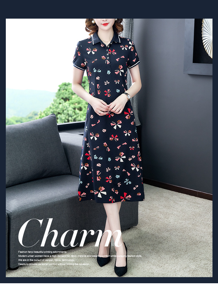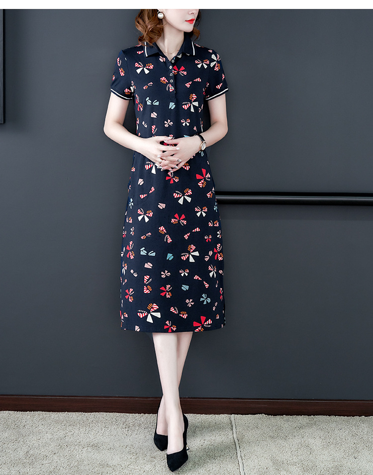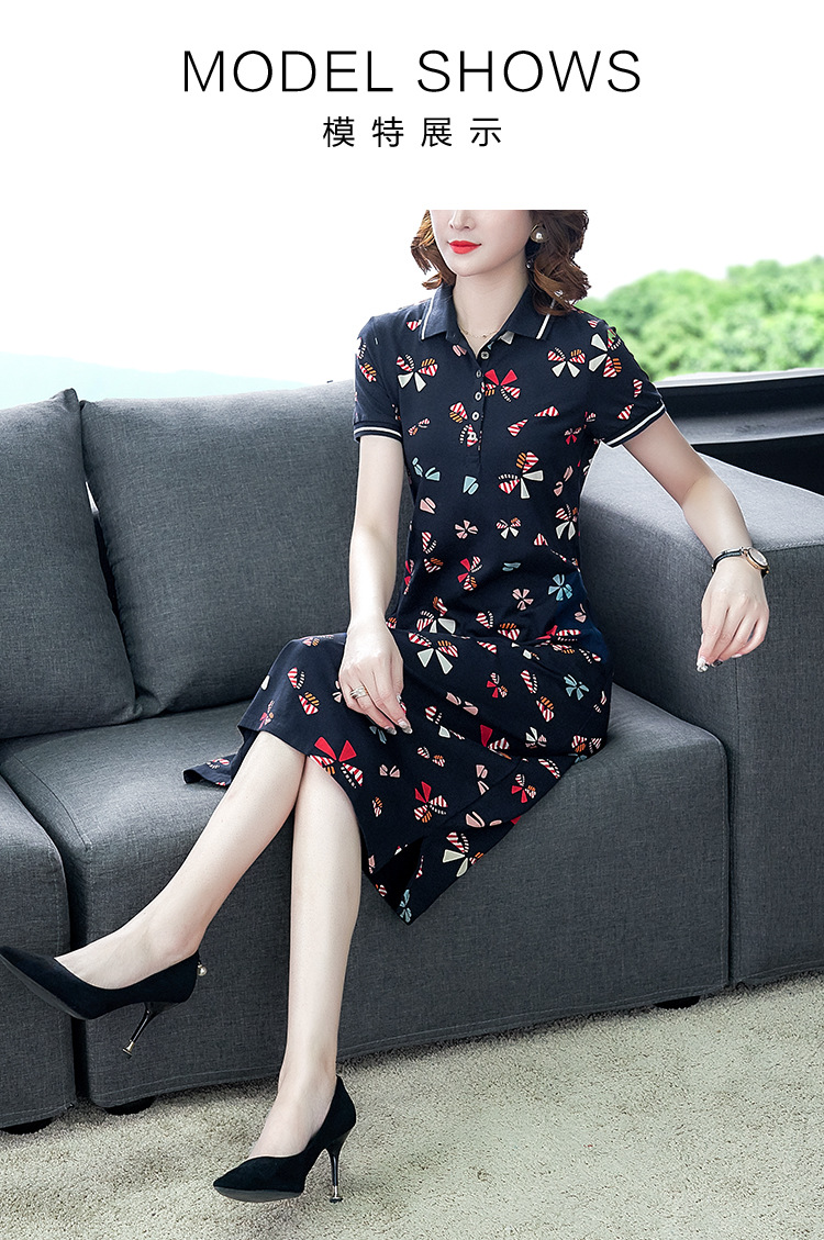 时尚碎花polo领T恤连衣裙,遮肉显瘦减龄连衣裙AHM-atfs8892