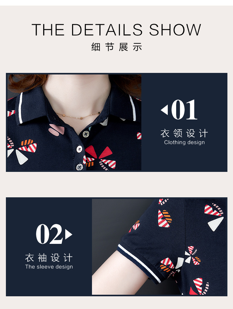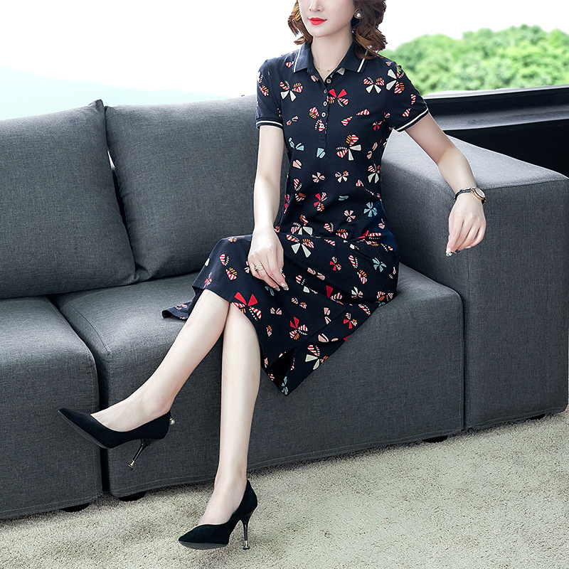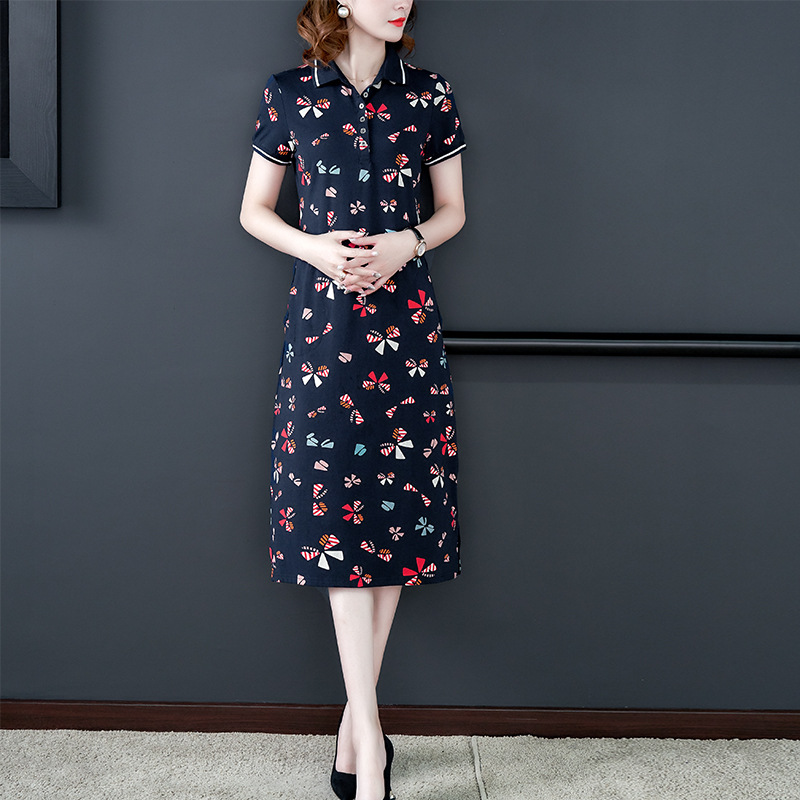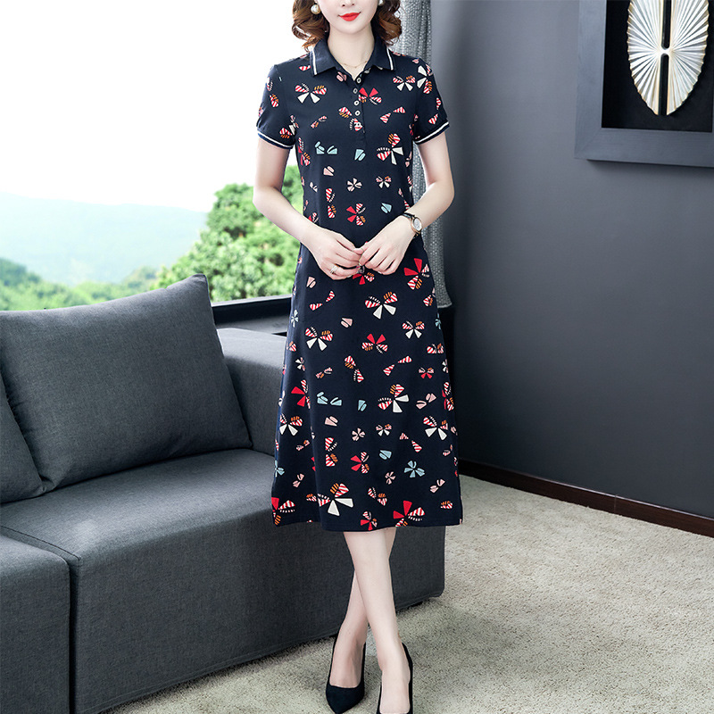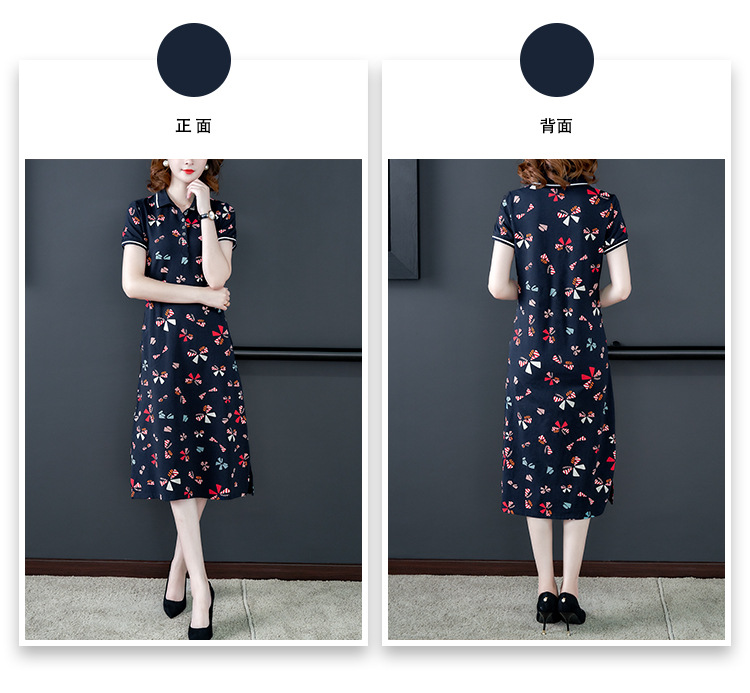 时尚碎花polo领T恤连衣裙,遮肉显瘦减龄连衣裙AHM-atfs8892