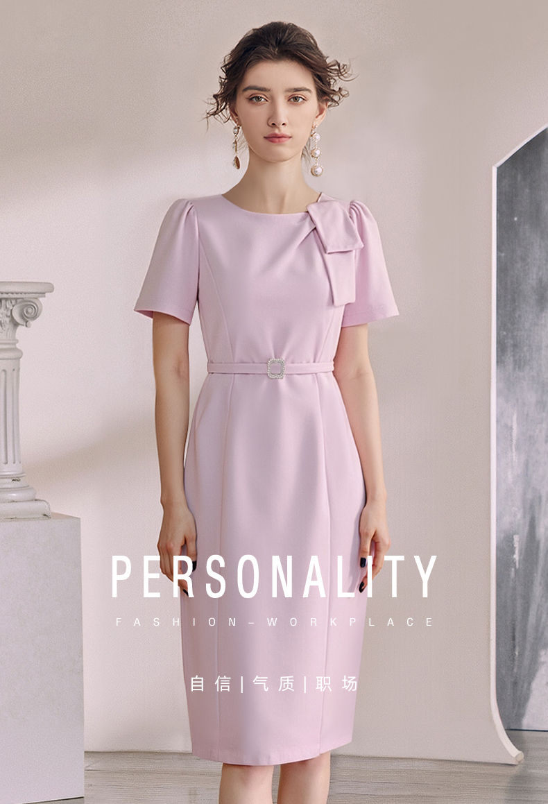 IWY/气质名媛高端精致职业装粉色连衣裙轻奢高级感美容院工作服WQ201