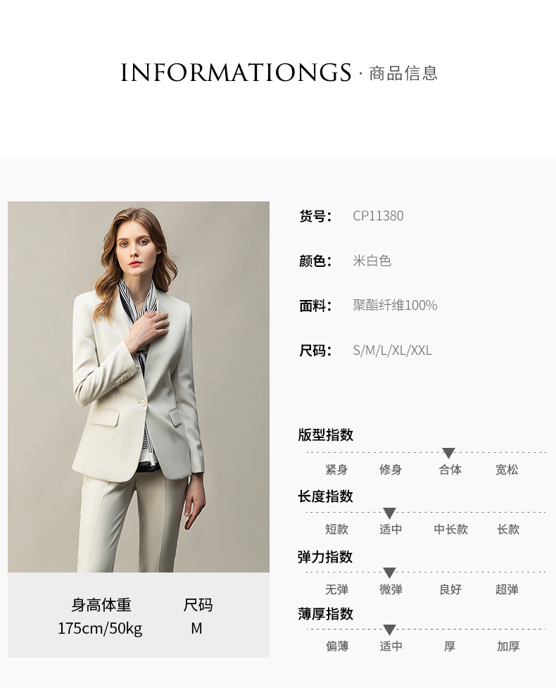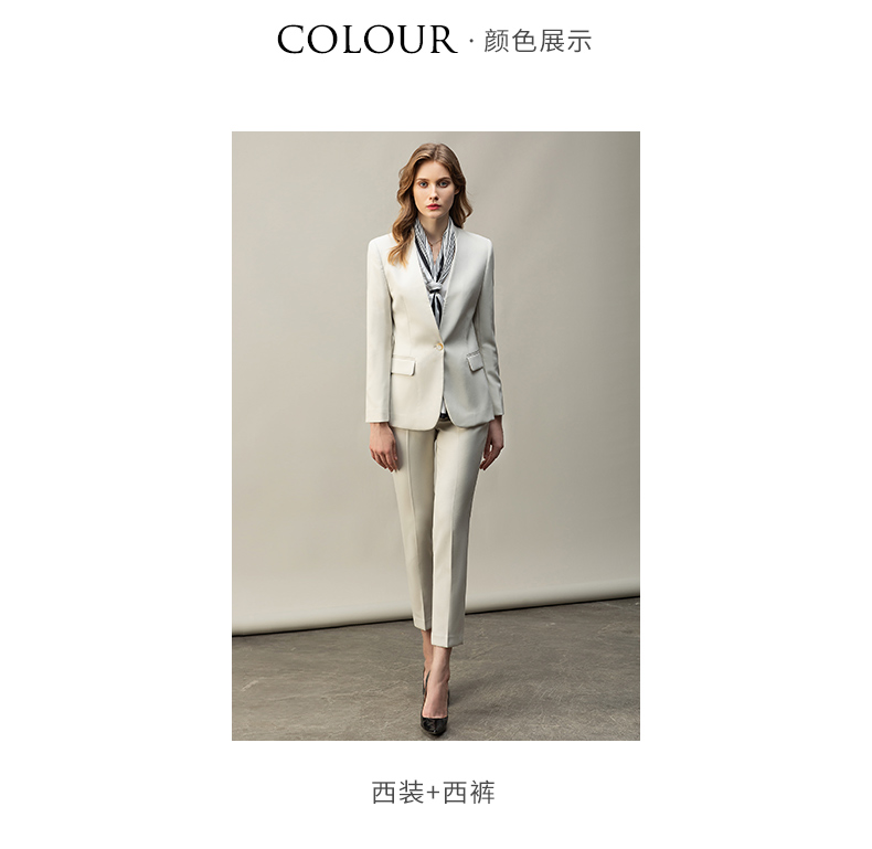 IWY/高端西装套装女正装米白色干练职业装气质女神范美容院工作服OL CP11380
