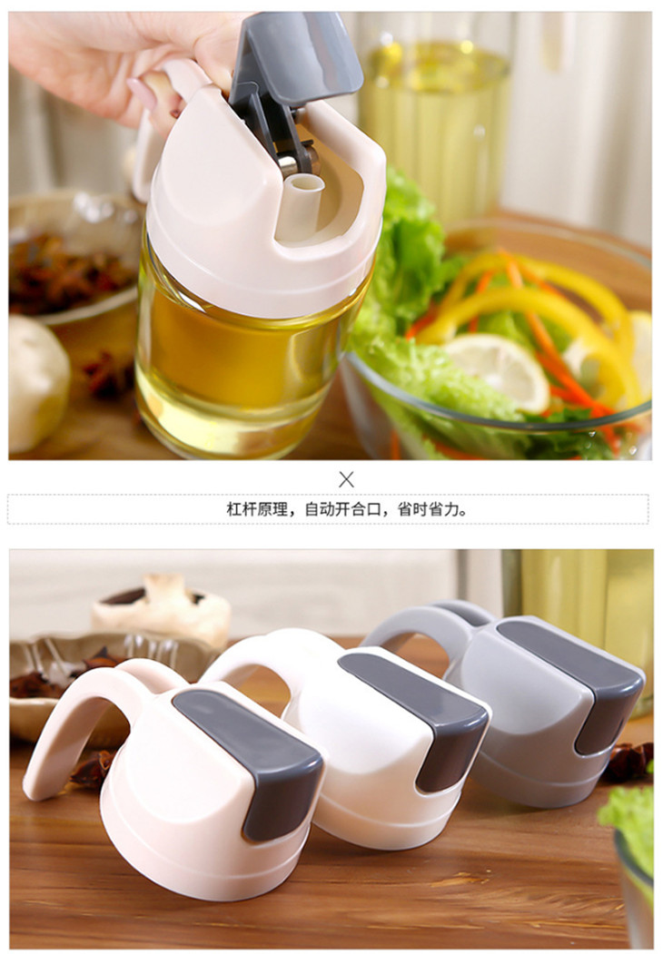 【厨房料理大号油壶】乐博厨房玻璃自动开合油壶 家用厨房防尘大容量玻璃油瓶600ml
