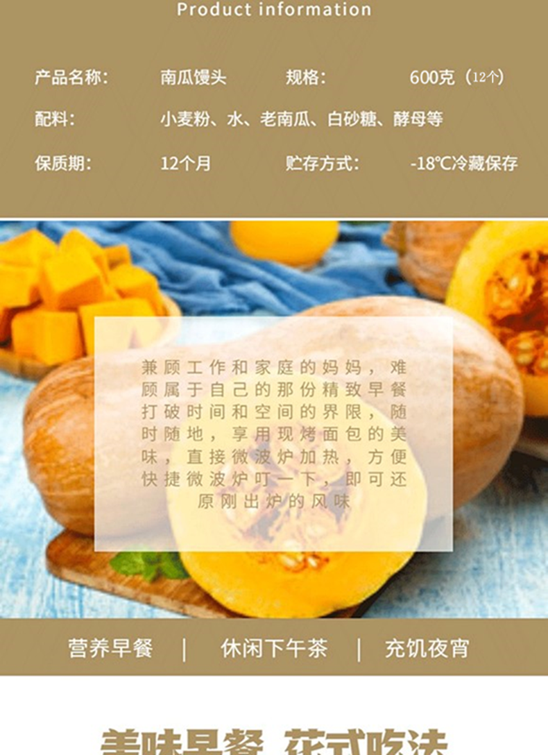 南瓜馒头600g(6只装)手工制作,配料干净!健康首选!c