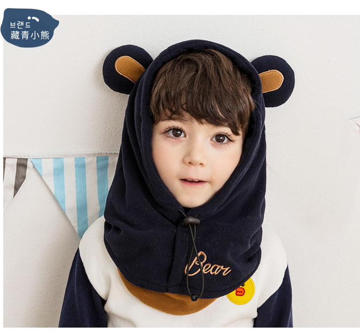 韩式新款儿童帽子冬天护耳帽宝宝帽子冬款护颈套头连帽一体帽